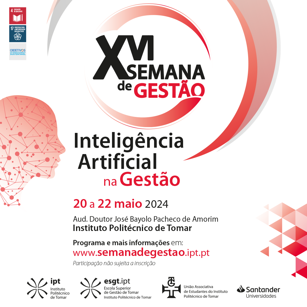 A XVI Semana de Gestão dinamizada pela Escola Superior de Gestão do Politécnico de Tomar (IPT) acontece entre os próximos dias 20 e 22 de maio. Os desafios e oportunidades da Inteligência Artificial para a Gestão é a temática desta edição, que vai reunir mais de duas dezenas de oradores.