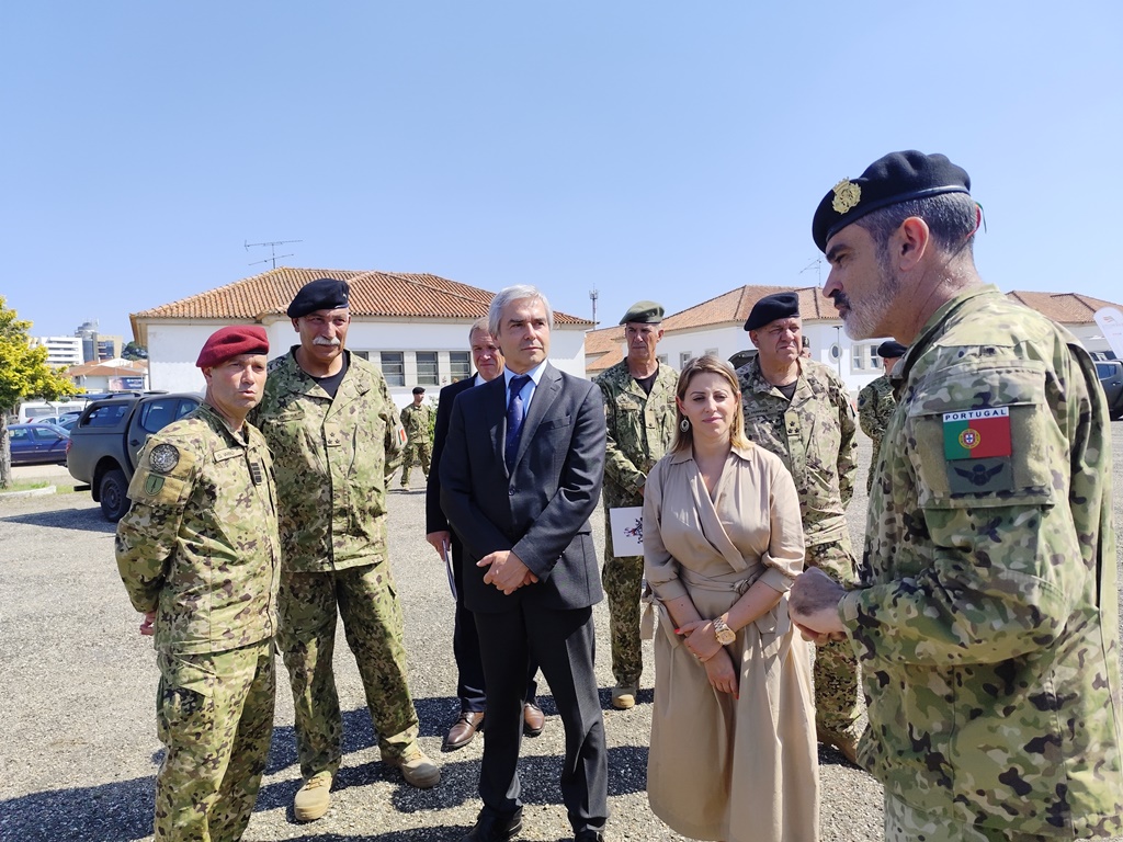 Nuno Melo, ministro da Defesa, Ana Isabel Xavier, secretária de Estado da Defesa, e Manuel Jorge Valamatos, presidente da Câmara de Abrantes, estiveram acompanhados pelo Vice-Chefe do Estado-Maior do Exército, Tenente-General Paulo Pereira, e pelo comandante do Regimento de Apoio Militar de Emergência (RAME), Coronel Tiago Lopes.