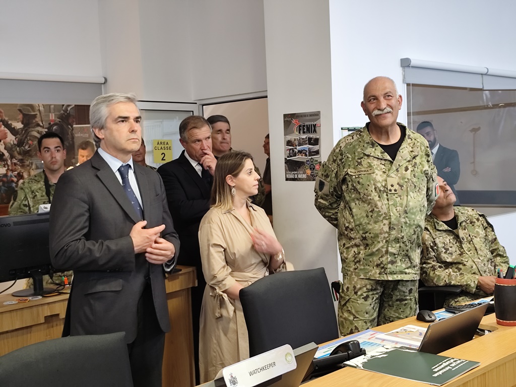 Nuno Melo teve ainda a oportunidade de poder ver a sala e comando em funcionamento, sendo que no dia da visita, o exército tinha equipas de vigilância de incêndios em Murça e no Algarve. E percebeu a forma como o Exército colabora nesta área em concreto, sendo certo que as equipas, quando deslocadas para um teatro de operações, não fazem combate direto. Ou fazem vigilância e prevenção, ou então cão chamados a ajudar para trabalhos de rescaldo. Mas há mais meios que podem ser empenhados, como máquinas de rasto. E é aqui que, afirmou o Tenente-General Paulo Pereira há uma “antecipação de eventuais saídas para o terreno. Se no comando percebermos que há uma situação grave ou com tendência a agravar, podemos antever que seremos chamados pela Proteção Civil e podemos ter os meios posicionados, para mais fácil agilização, quando necessário.”