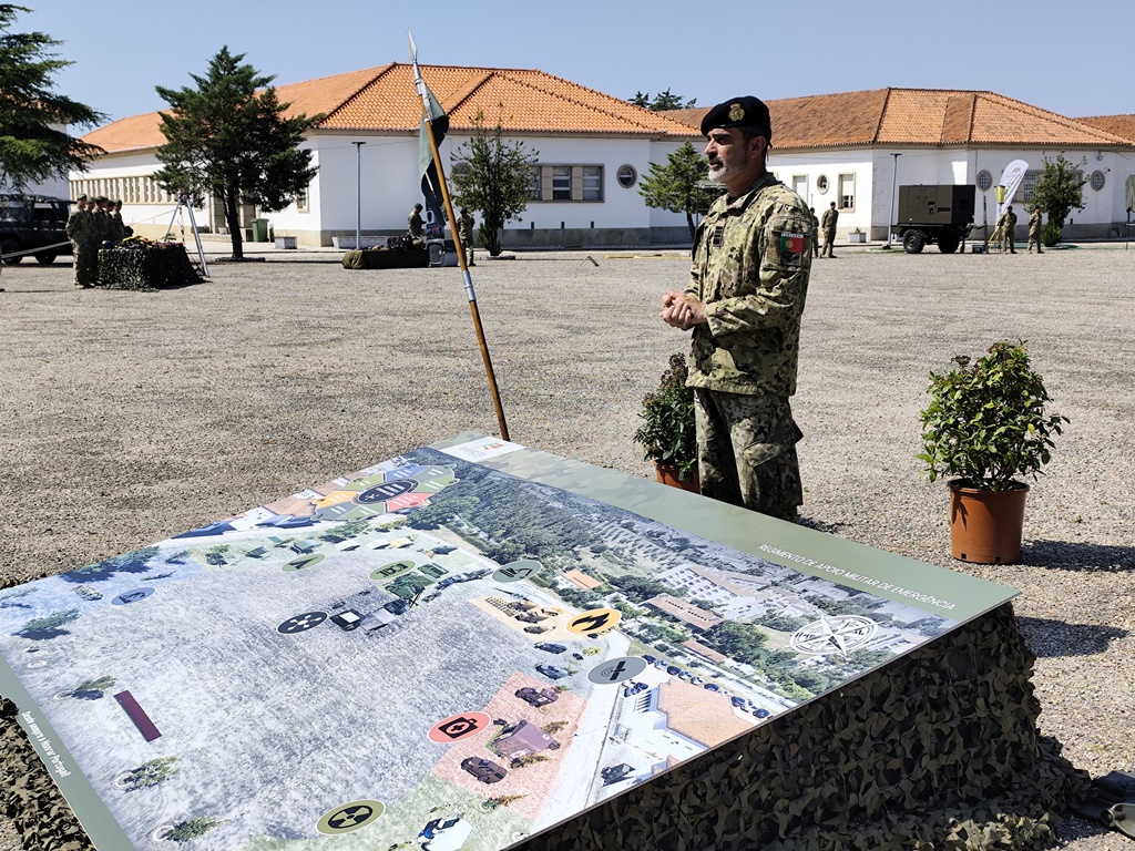 E foi o vice-CEME que, à entrada do centro de comando da unidade e que opera os meios em todo o território nacional, explicou o trabalho importante deste regimento, um dos mais recentes do exército. E foi criado precisamente pela necessidade cada vez mais urgente em dar resposta aos novos desafios do tempo atual. Quer seja com as alterações climáticas e eventos cada vez mais violentos relacionados com o clima, quer sejam os incêndios que a cada verão constituem um problema no mediterrâneo, quer sejam eventuais terremotos ou ameaças biológicas, ou bioquímicas. Há uma resposta, que tem de ser pronta, e que pode não ser com armas ou com equipamento bélico.