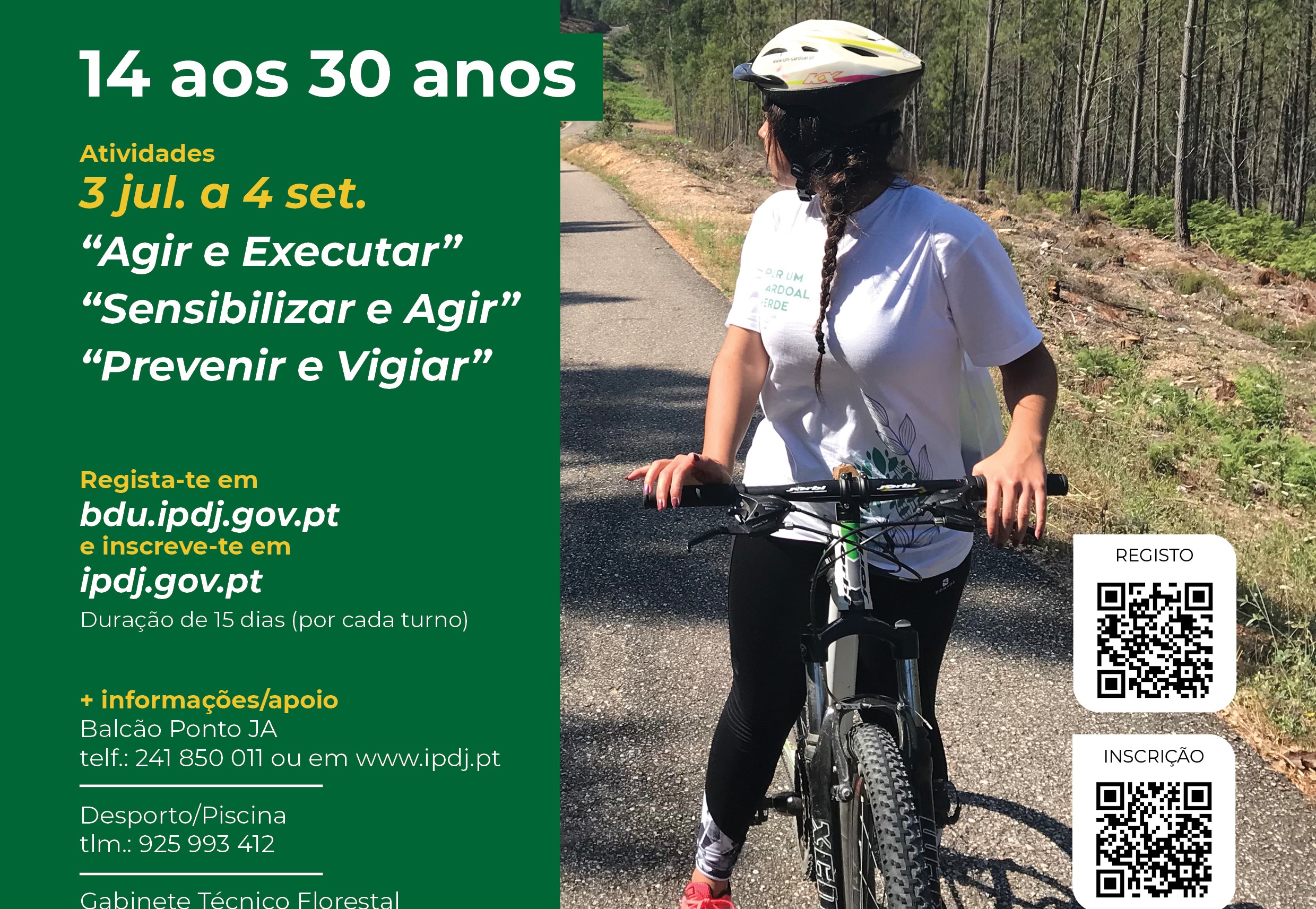 O registo deve ser feito em bdu.ipdj.gov.pt. As inscrições podem ser efetuadas no Portal ipdj.gov.pt e mais informações podem ser adquiridas junto do Ponto Ja (241 850 011), do Setor de Desporto deste Município (961 079 996) ou do Gabinete Técnico Florestal de Sardoal (241 850 050).