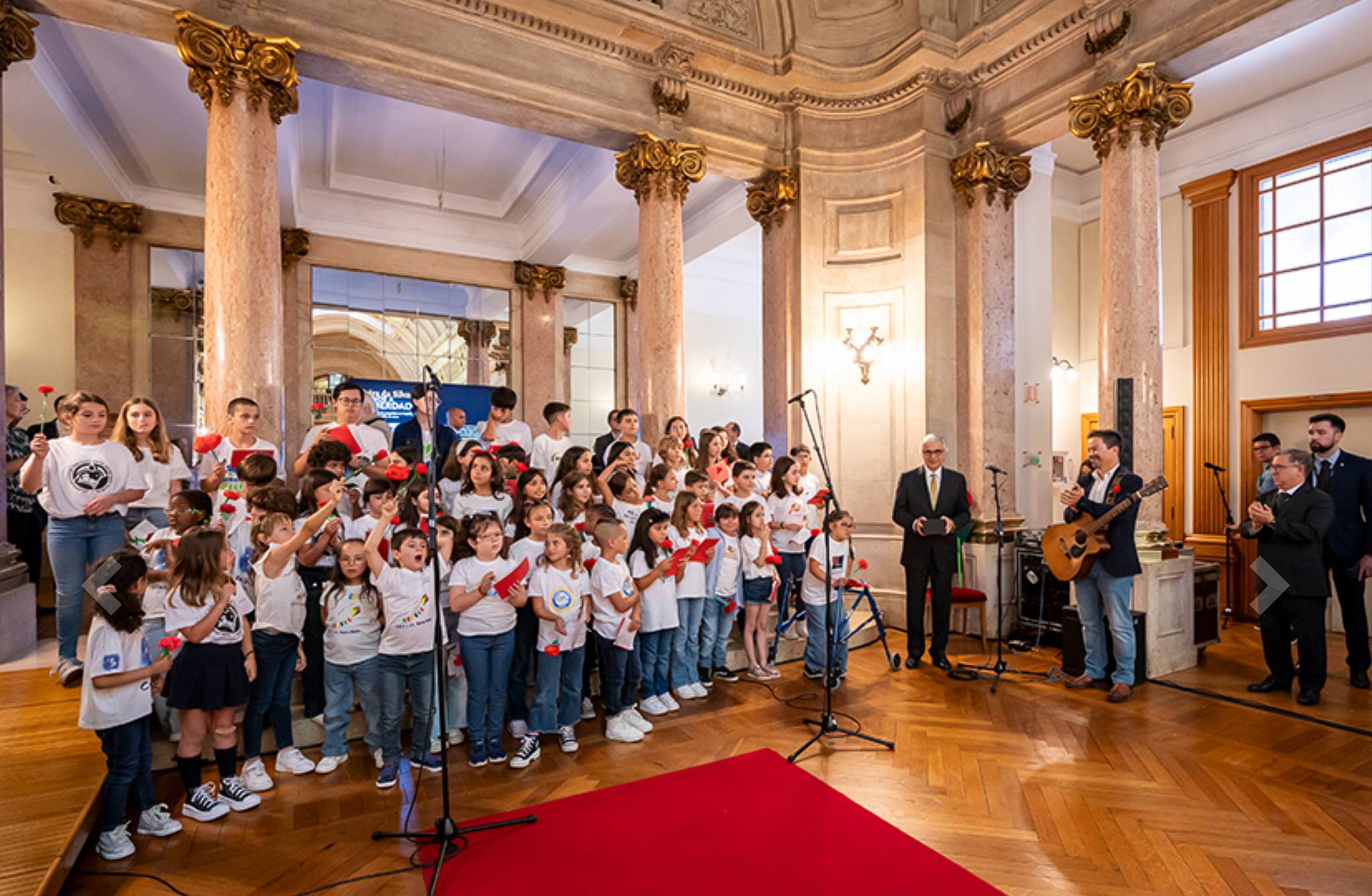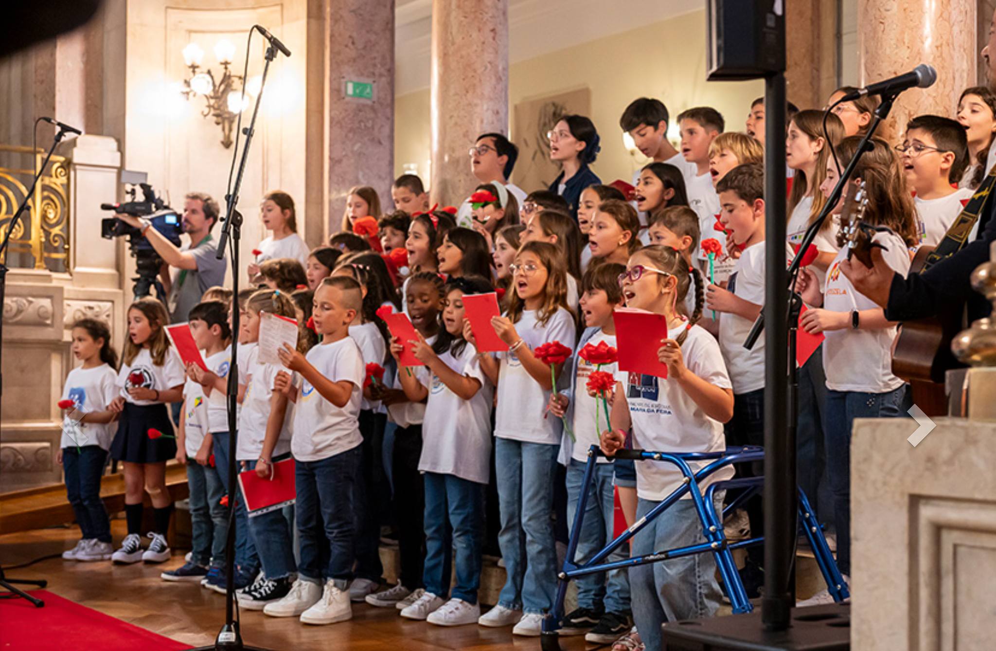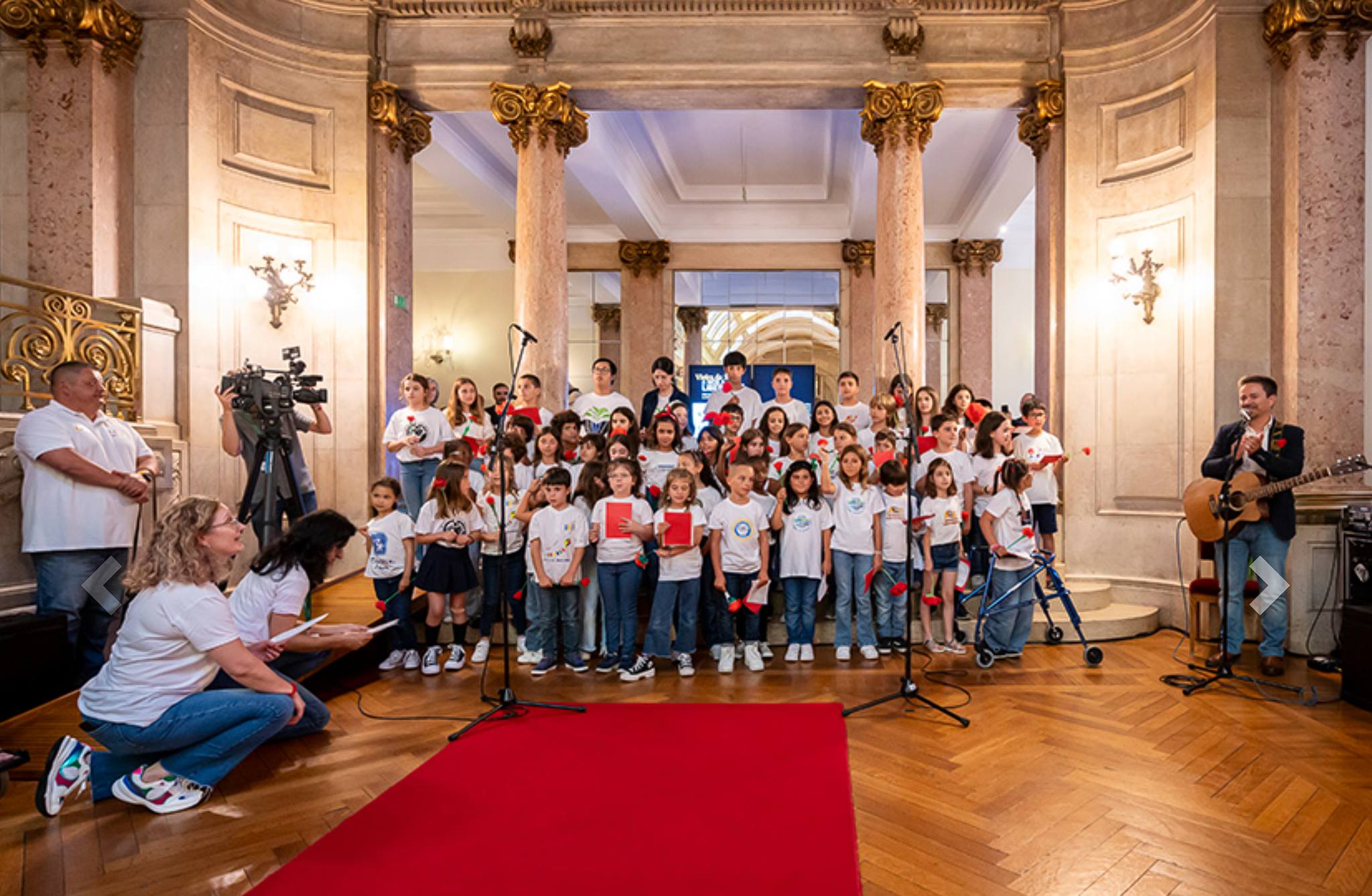 Simbolicamente, foram 50 os alunos de escolas de todo o país que cantaram o tema na Sala do Passos Perdidos, acompanhados à guitarra pelo músico e professor Pedro Dyonysyo com a atenção do Sr. Presidente da Assembleia da República, José Pedro Aguiar-Branco, deputados, funcionários da Assembleia da República, professores e ainda um grupo de soldados Ucrâneanos que estão a receber cuidados de saúde em Portugal.