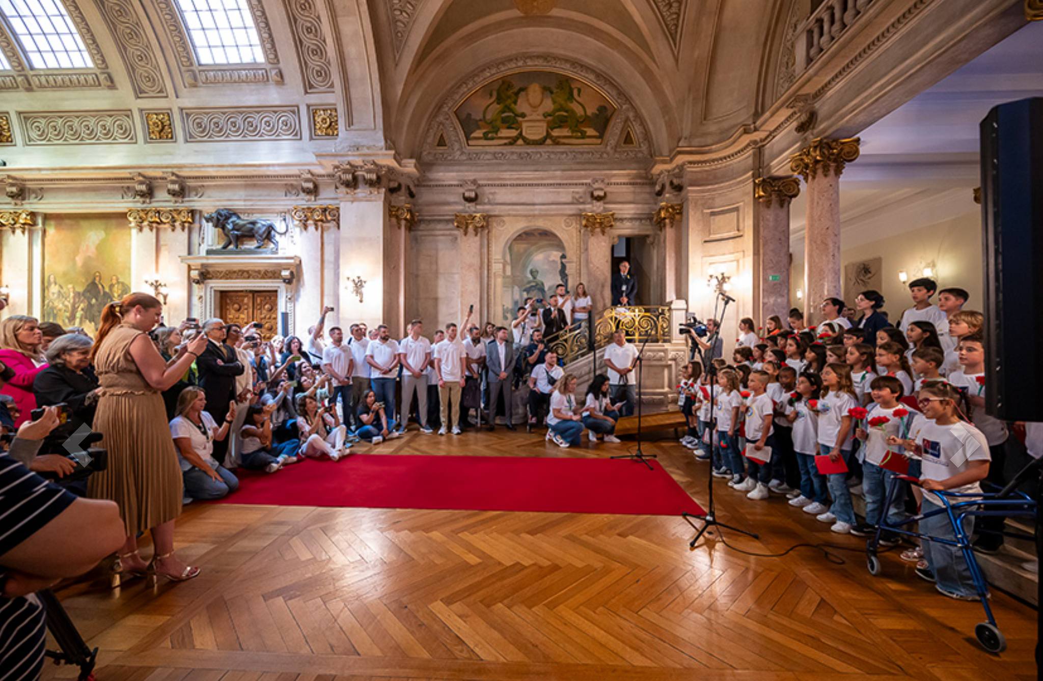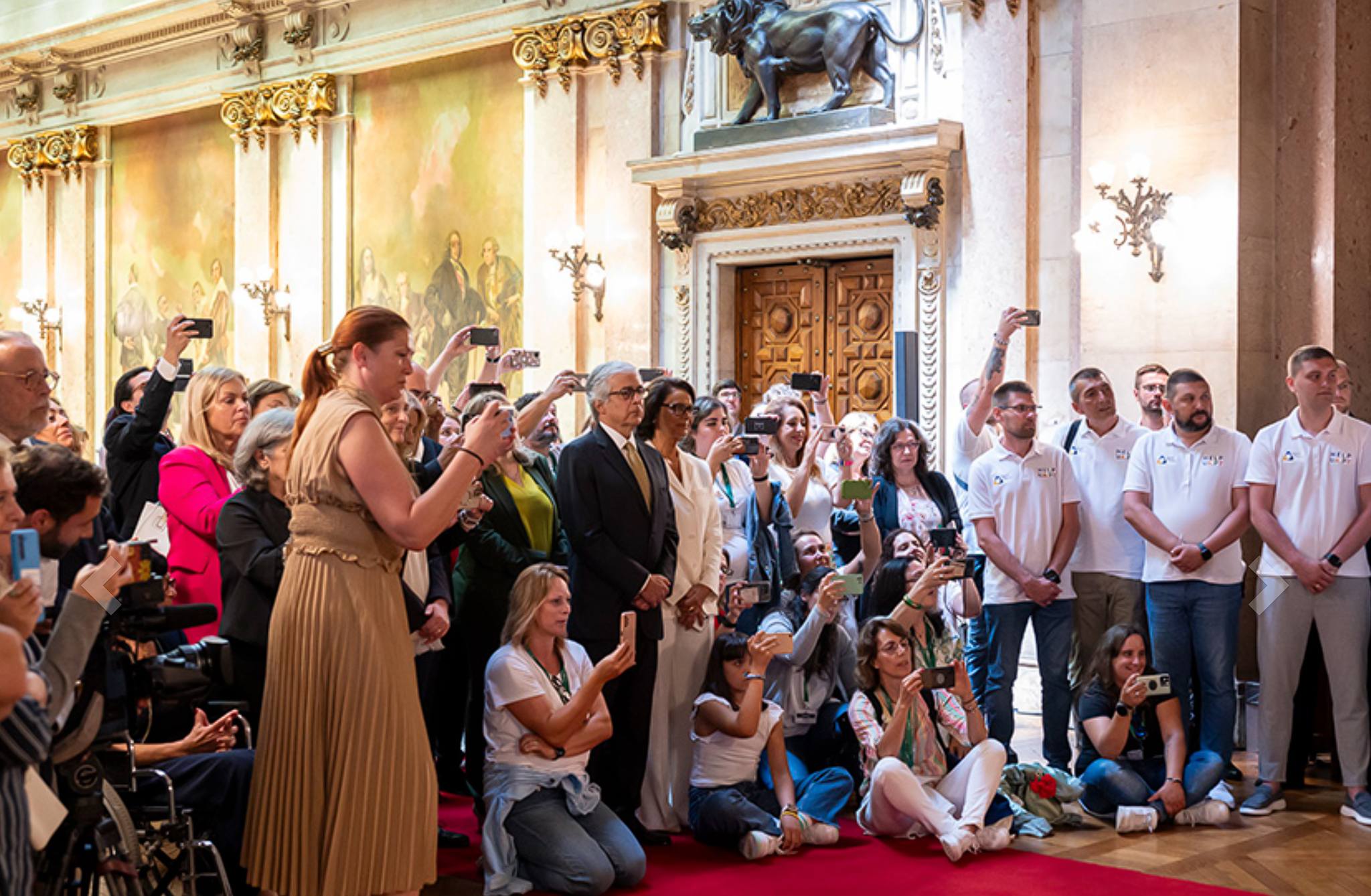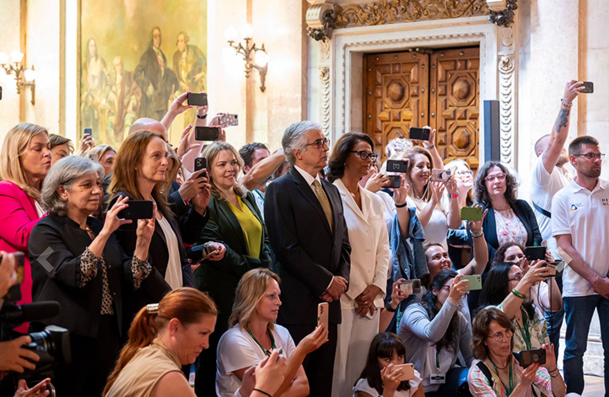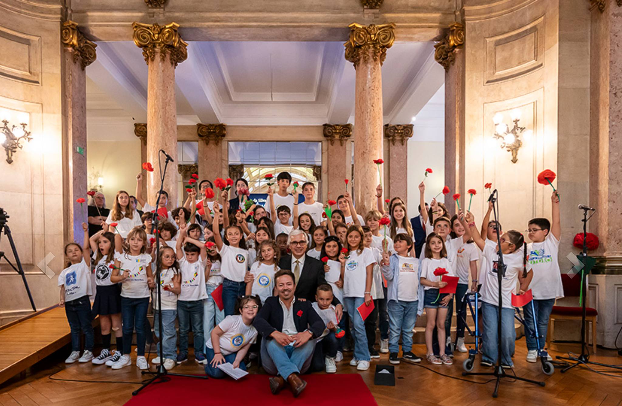 Simbolicamente, foram 50 os alunos de escolas de todo o país que cantaram o tema na Sala do Passos Perdidos, acompanhados à guitarra pelo músico e professor Pedro Dyonysyo com a atenção do Sr. Presidente da Assembleia da República, José Pedro Aguiar-Branco, deputados, funcionários da Assembleia da República, professores e ainda um grupo de soldados Ucrâneanos que estão a receber cuidados de saúde em Portugal.