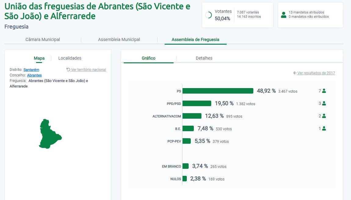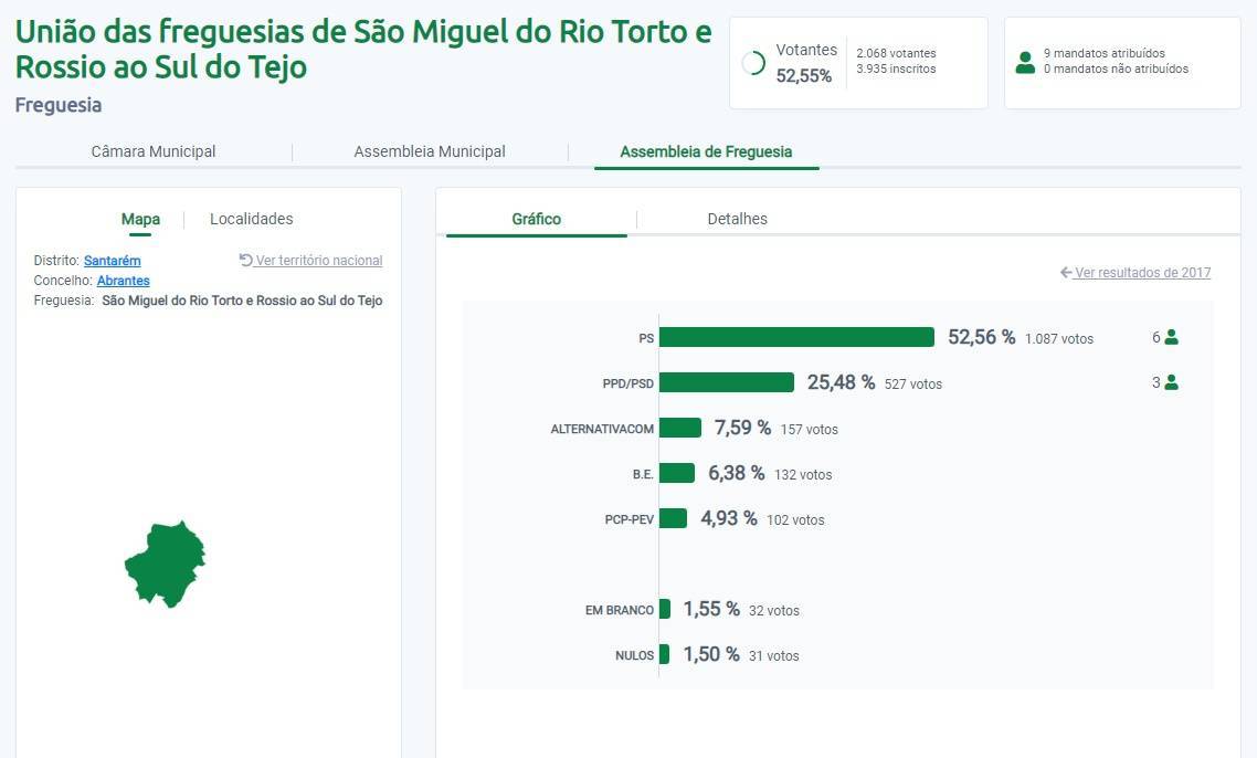 O concelho de Abrantes não teve grandes mudanças, havendo apenas uma freguesia a mudar de mãos nestas eleições.