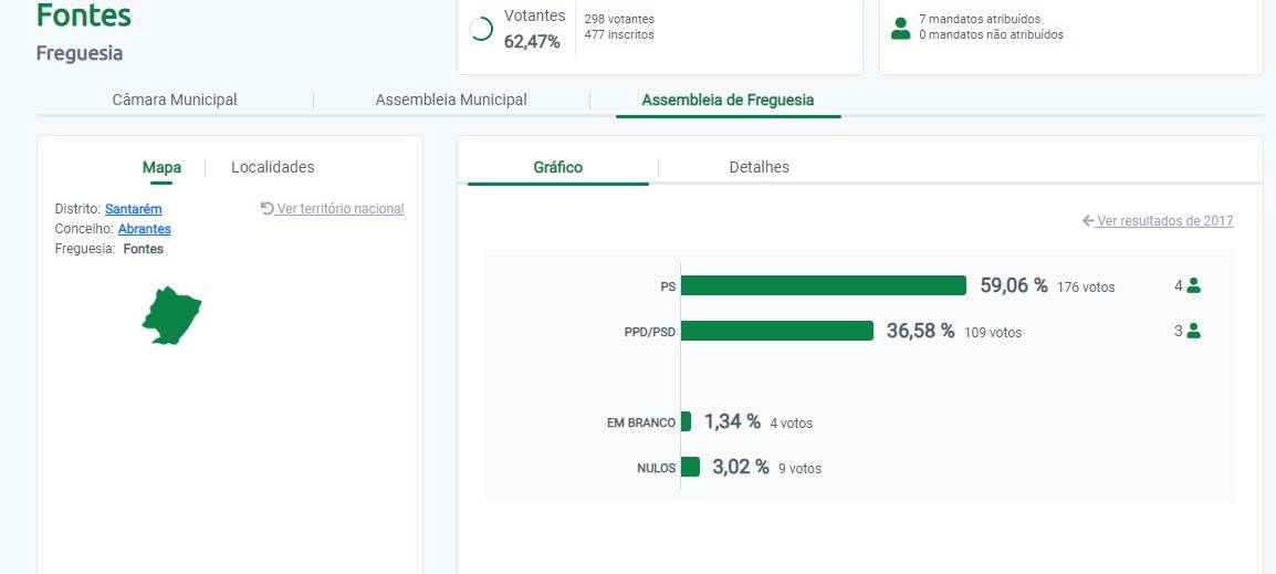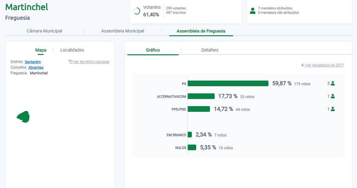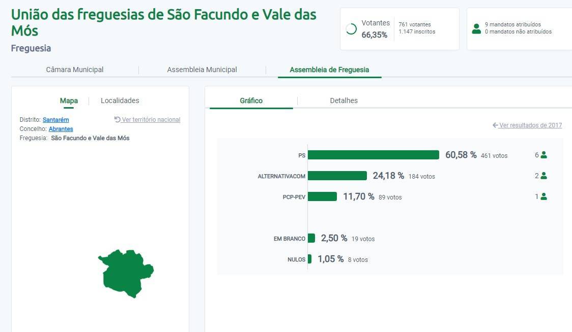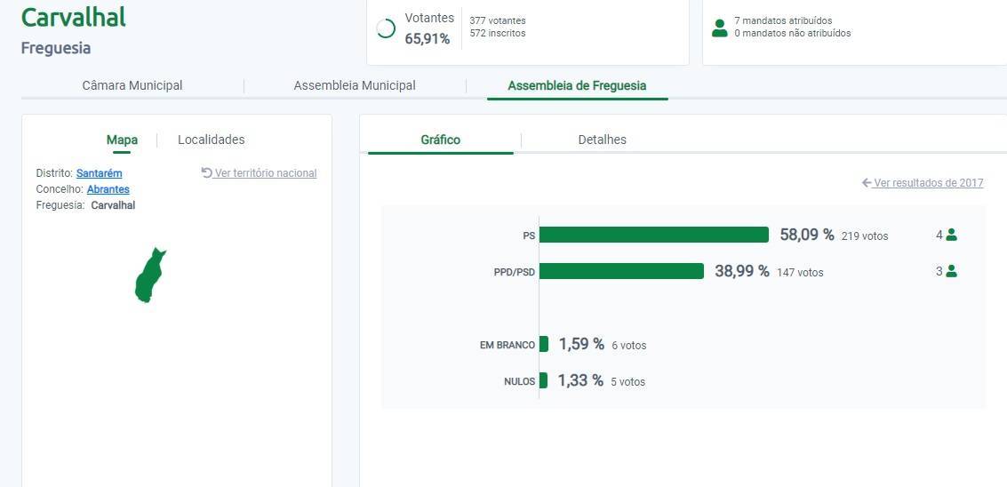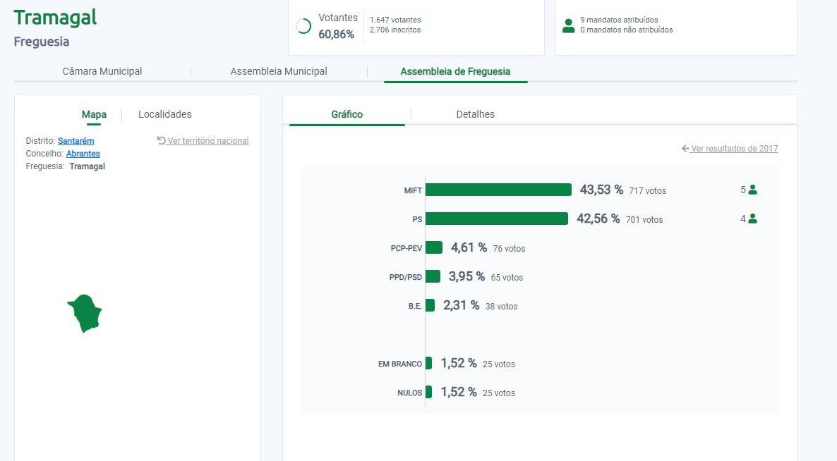 Em Tramagal o movimento independente MIFT, liderado por António José Carvalho, conseguiu ganhar ao PS que teve este ano mudança de candidato. Com vantagem de 16 votos foi a única freguesia que mudou de “mãos” neste ato eleitoral.