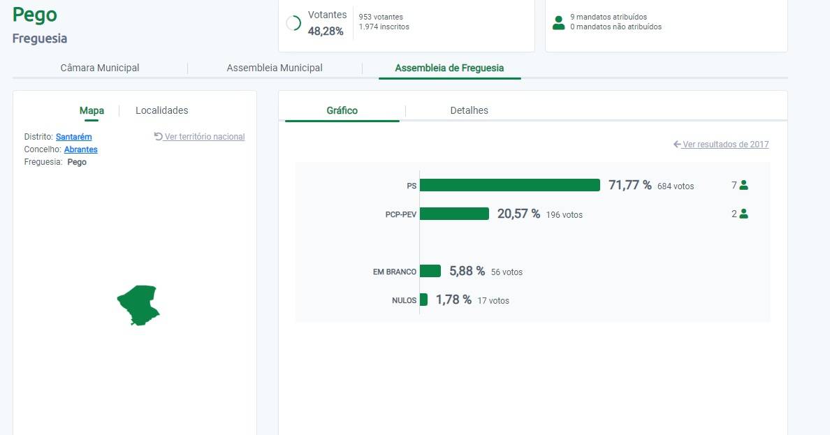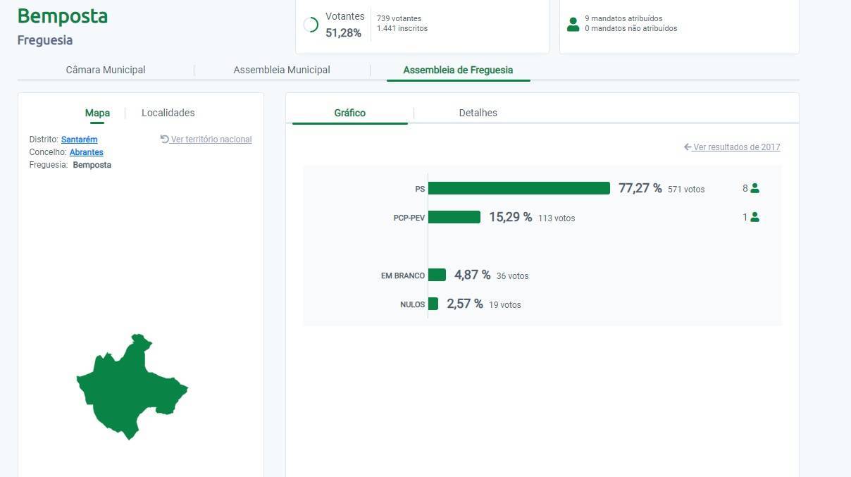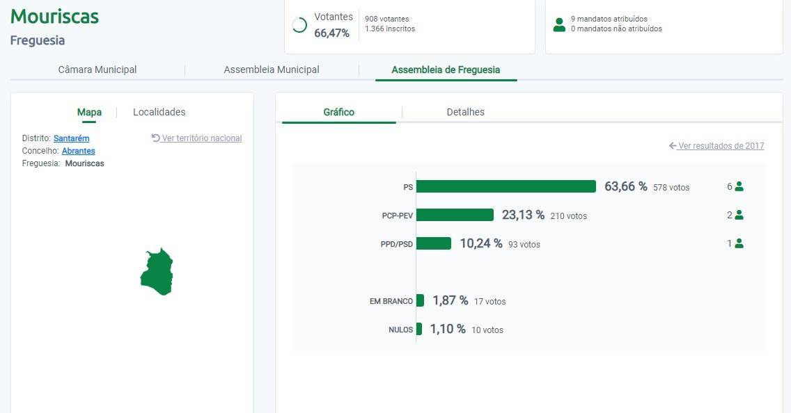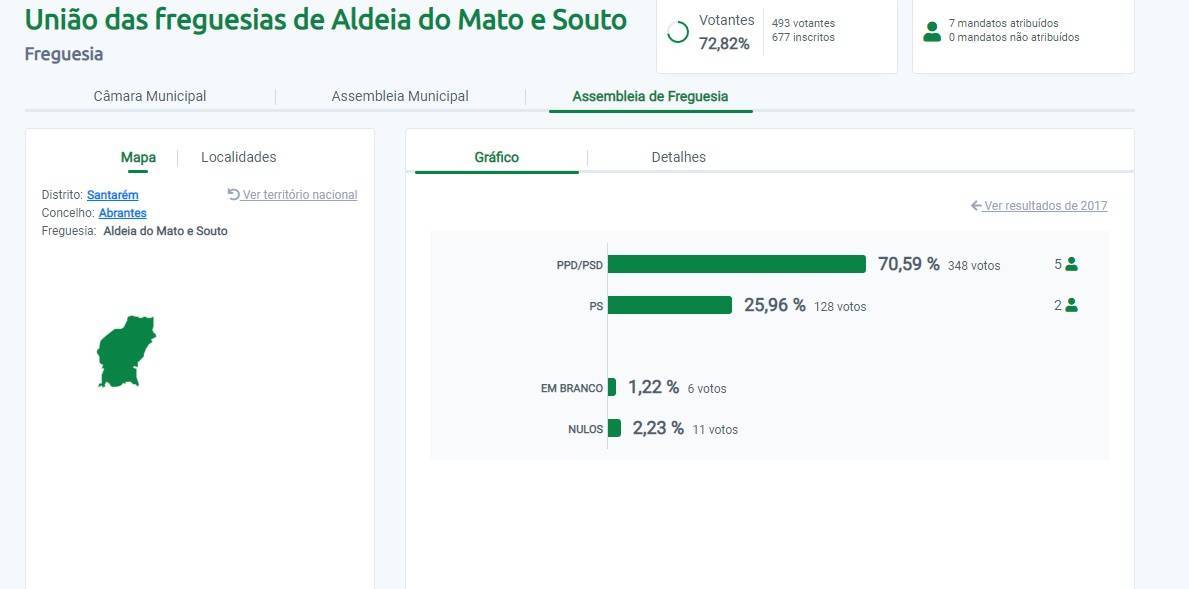 Em Tramagal o movimento independente MIFT, liderado por António José Carvalho, conseguiu ganhar ao PS que teve este ano mudança de candidato. Com vantagem de 16 votos foi a única freguesia que mudou de “mãos” neste ato eleitoral.
