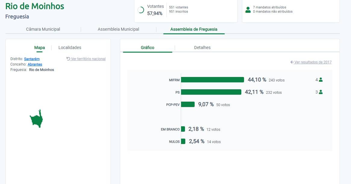 Em Rio de Moinhos o movimento independente (MIFRM) liderado por Rui André segurou a junta de freguesia por 11 votos de vantagem sobre a candidata socialista Liliana Carvalho.