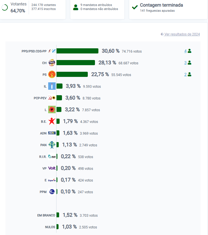 “Ficámos em primeiro lugar em 11 dos 21 concelhos. Em 2024 só vencemos em dois concelhos. Agora vencemos em 11. Acreditamos que, numa próxima eleição, podemos ganhar o distrito”, disse à Lusa José Dotti.