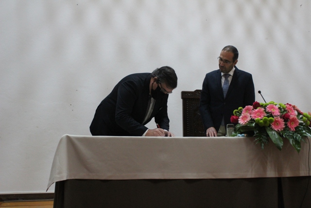 A cerimónia de tomada de posse decorreu ainda com as limitações da pandemia com todos os presentes em distanciamento e a usar máscara que apenas retiraram nos discursos ou para as fotografias da praxe.