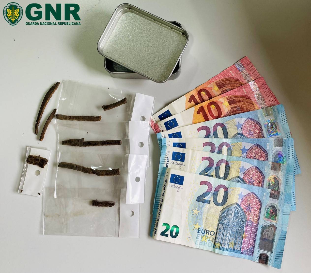 Durante a ação foram apreendidas 22 doses de haxixe e 100 euros em numerário.