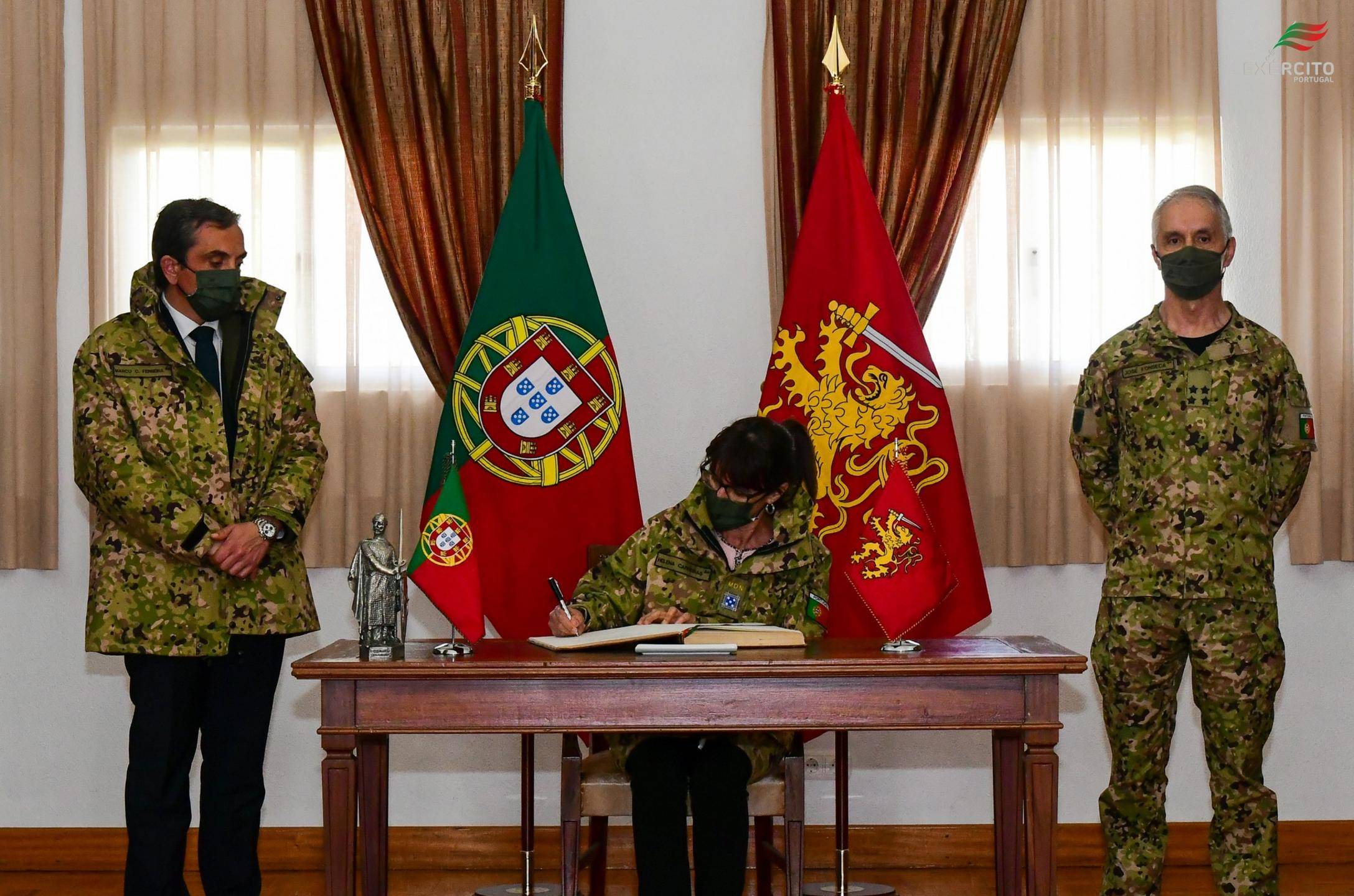 A encerrar a visita, a ministra da Defesa Nacional assinou o Livro de Honra do Exército Português.