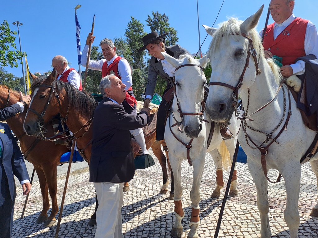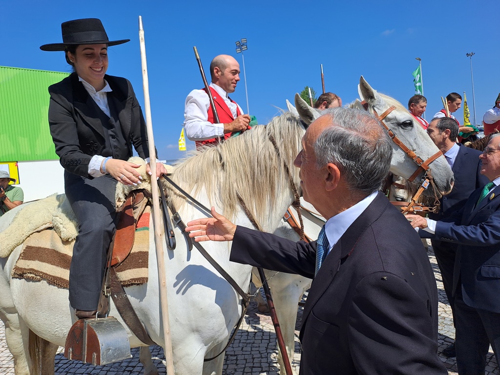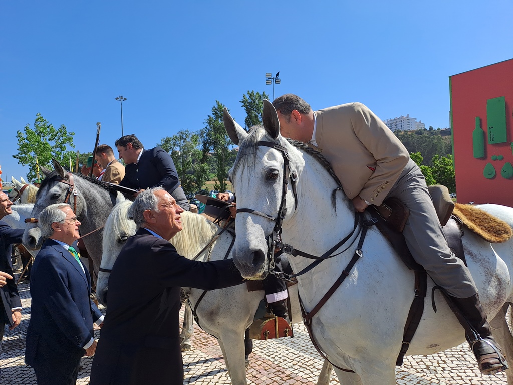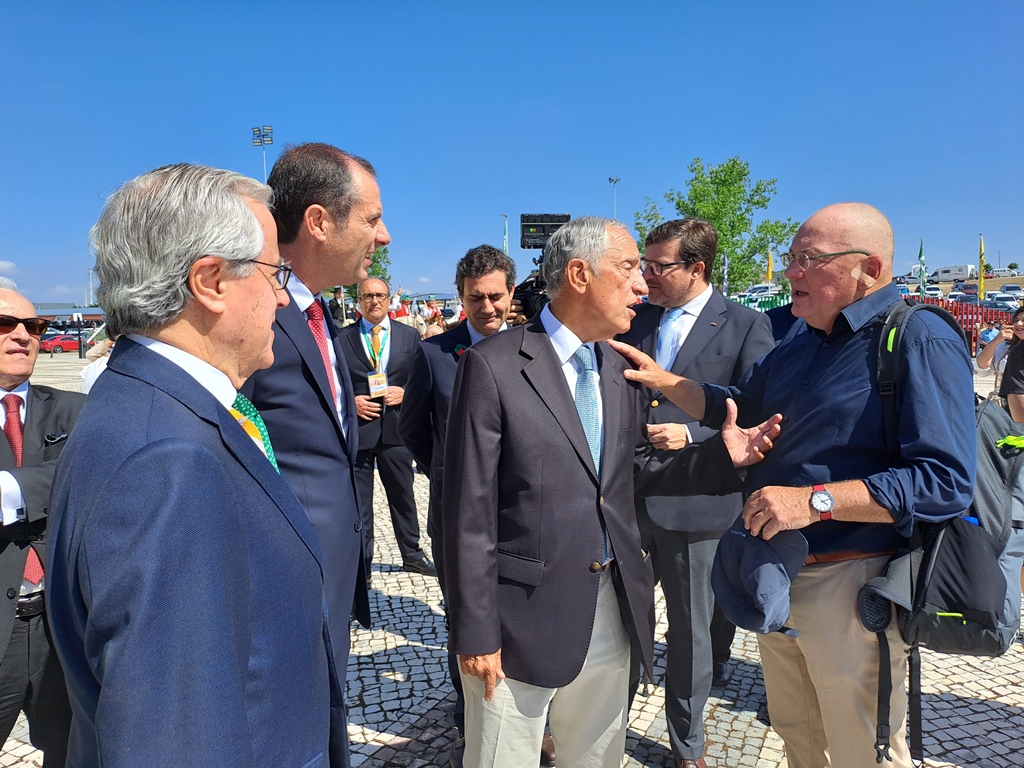O Presidente chegou e cumprimentou a "guarda de honra de campinos" que o esperavam à entrada do CNEMA e teve oportunidade de conversar com o artista nerlandês, Henk Hofstra, que instalou, à entrada da Feira, um conjunto de "ovos estrelados gigantes".