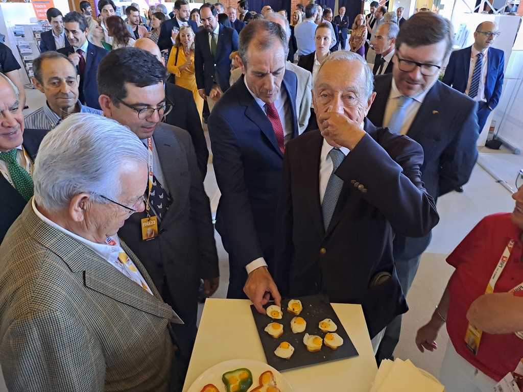 Marcelo Rebelo de Sousa entrou depois para a exposição de destaque deste ano da FNA que promove o ovo como superalimento e assistiu à apresentação de um estudo, encomendado pela CAP ao Centro de Estudos e Sondagens de Opinião da Universidade Católica Portuguesa sobre a agricultura.