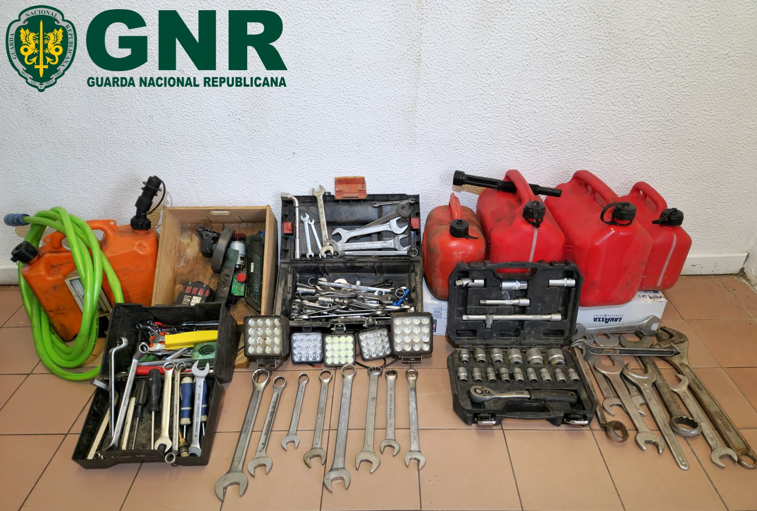 A GNR adianta que, no cumprimento de três buscas domiciliárias no concelho de Santarém, apreendeu 106 chaves de diferentes tamanhos e tipos, cinco jerricãs de combustível, cinco projetores LED, uma mangueira, uma rebarbadora, uma caixa contendo um conjunto de chaves e uma barra LED de máquina florestal.