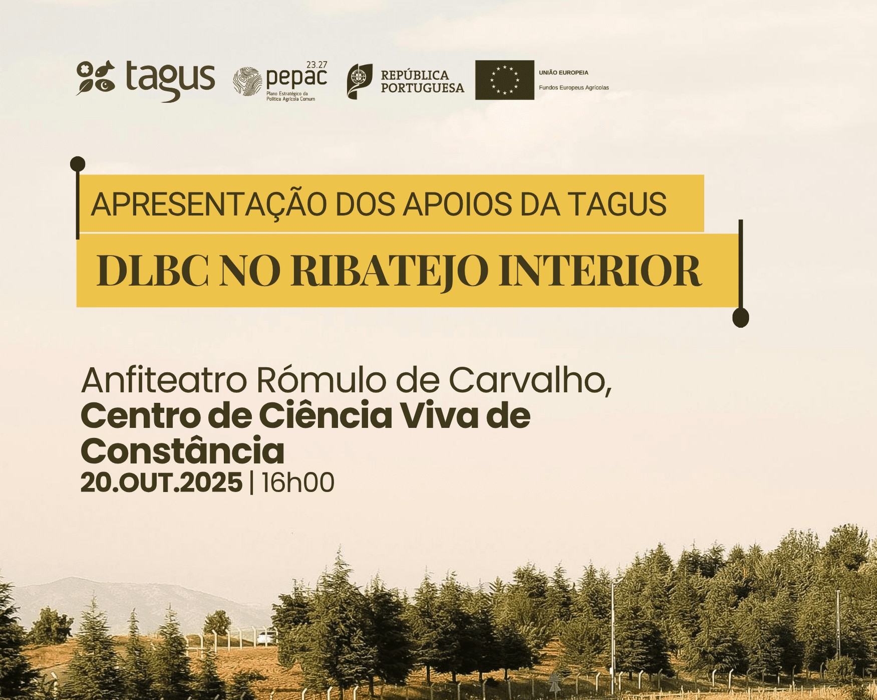 A TAGUS – Associação para o Desenvolvimento Integrado do Ribatejo Interior vai apresentar, no dia 20 de outubro, as linhas de apoio que tem disponíveis para apoiar projetos a implementar em Abrantes, Constância e Sardoal até 2027, no âmbito do Desenvolvimento Local de Base Comunitária (DLBC), do Plano Estratégico da Política Agrícola Comum (PEPAC), cofinanciados pelos Fundos Europeus Agrícolas. A TAGUS tem disponível mais de 1,5 ME para apoiar projetos de agricultores, produtores, Pequenas e Médias Empresas (PME) de comércio e serviços, autarquias, coletividades, entre outros.