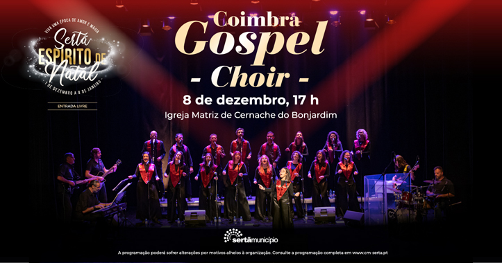 A Igreja Matriz de Cernache do Bonjardim vai ser o palco do concerto de “Coimbra Gospel Choir” no próximo dia 8 de dezembro, às 17 horas. Integrado na programação Sertã Espírito de Natal, o concerto contará com a direcção do Maestro Nuno Mendes e apresentará um reportório variado, contemplando temas natalícios, de onde se destacam “Noite Feliz”, “Santa Claus is coming to Town”, “Oh Happy Day”, “Hossana”, entre outros.