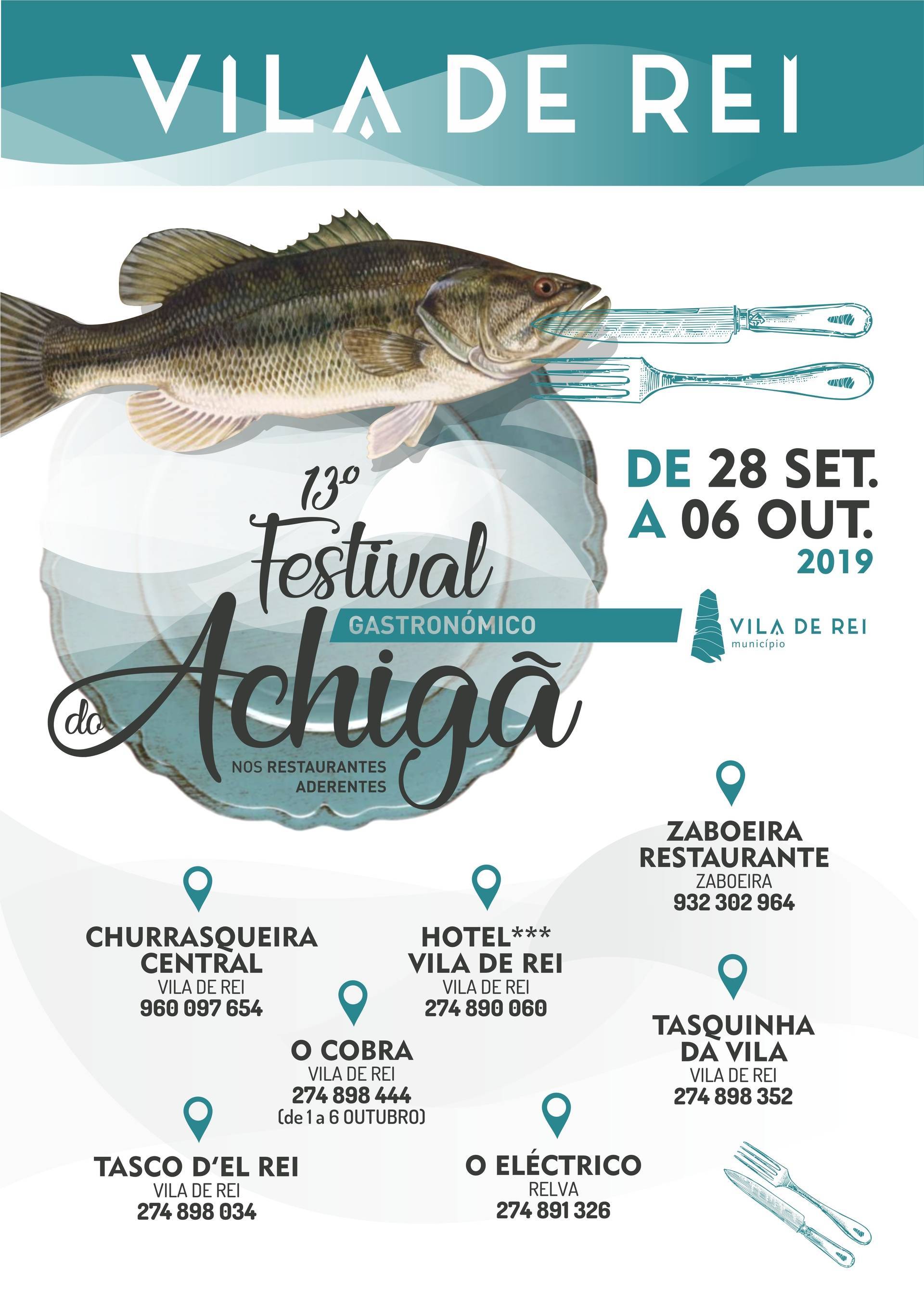 Na edição de 2019, serão sete os restaurantes a oferecer a possibilidade de se deliciar com pratos tradicionais onde o achigã é o ingrediente dominante: Churrasqueira Central (Vila de Rei), Hotel*** Vila de Rei (Vila de Rei), O Cobra (Vila de Rei – apenas de 1 a 6 de outubro), O Eléctrico (Relva), Tasco d’el Rei (Vila de Rei), Tasquinha da Vila (Vila de Rei) e Zaboeira Restaurante (Zaboeira).