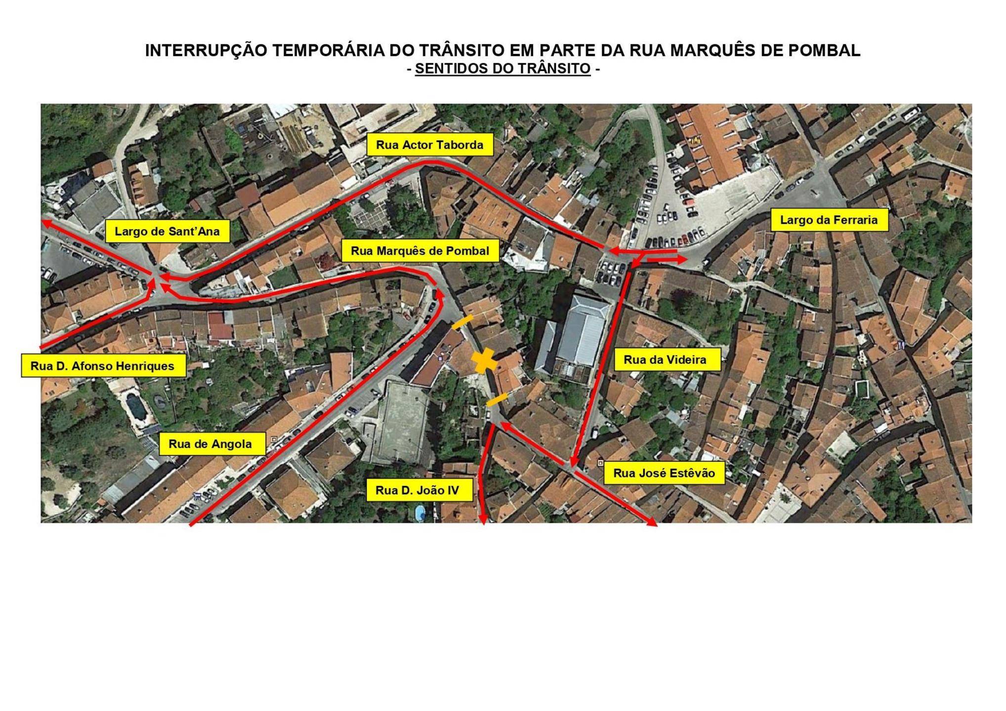 Desta forma o trânsito na Rua de Angola será apenas permitido a moradores e irá ser invertido o sentido do trânsito na parte da Rua Marquês de Pombal, entre a Rua de Angola e o Largo de Sant´Ana, que ficará com o sentido ascendente, sendo proibido o trânsito no sentido descendente.