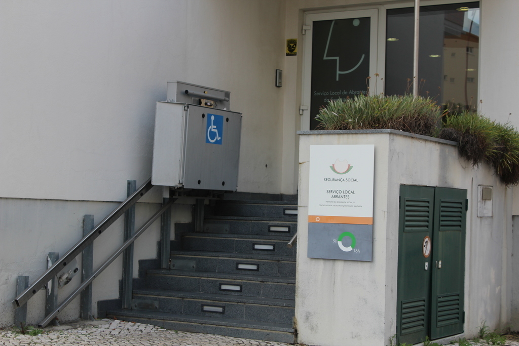 A plataforma elevatória do Serviço de Atendimento da Segurança Social de Abrantes não está a funcionar há alguns meses, obrigando as pessoas com mobilidade condicionada a serem atendidas na rua, junto ao edifício daquela entidade.