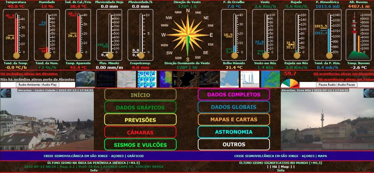 “Temos temperaturas muito elevadas e a esta hora (15 horas de 12 de julho) já ultrapassamos os 41 graus e temos humidade de 11%”, explicou Hélder Silvado que acrescentou que a estação MeteoAbrantes já tinha emitido, poucos minutos antes, um alerta do “chamado 3 trintas.” É uma situação “extremamente gravosa” que é uma confluência de três parâmetros meteorológicos, temperatura, humidade e vento.