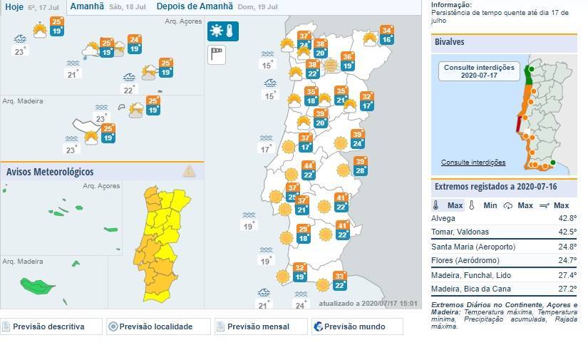 42.8 graus foi a temperatura mais alta de Portugal registada ontem, quinta-feira, pelas estações do Instituto Português do Mar e da Atmosfera. Seguiu-se na lista Tomar (Valdonas) com 42.5 graus.