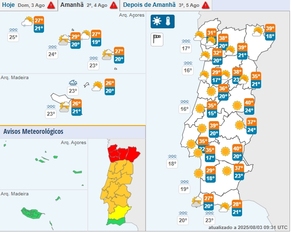A situação de alerta entrou em vigor às 00:00 e prolonga-se até às 23:59 de quinta-feira, 07 de agosto.