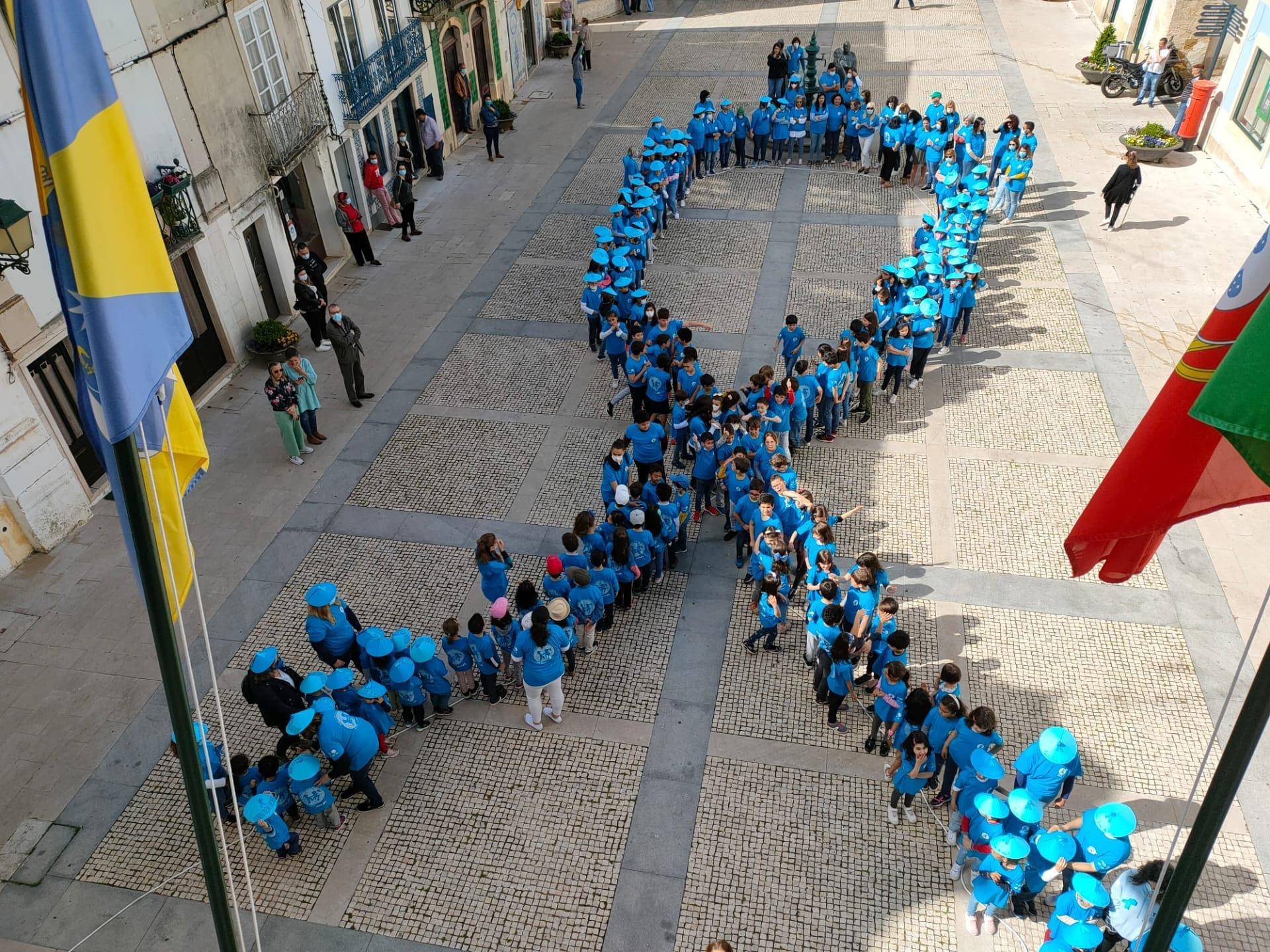 Foi na manhã desta sexta-feira, dia 29 de abrail, que as crianças do Jardim de Infância S. João Batista, Escola N°2 e Escola dos Quinchosos, "desenharam" Laço azul humano na Praça Raimundo Soares, em Abrantes.