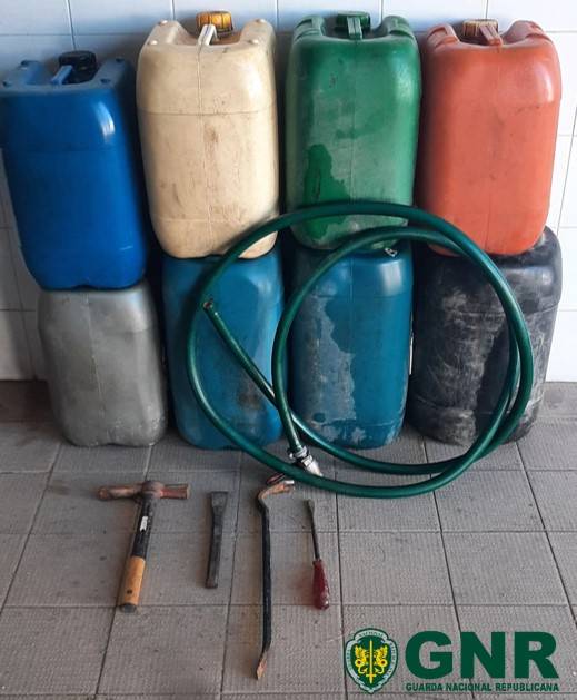 Para além da detenção dos suspeitos, a ação resultou na apreensão de oito jerricãs para acondicionamento de combustível, um pé-de-cabra, um martelo, uma chave de fendas, uma ponteira de fendas e uma mangueira de cor verde, com uma torneira numa extremidade.
