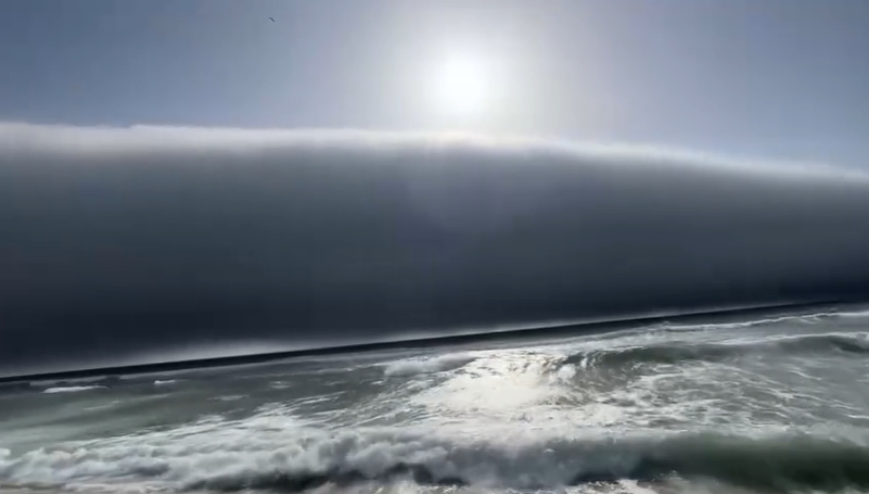 Os banhistas foram surpreendidos com uma nuvem parecida com uma onda gigante, acompanhada por vento forte, devido à diferença de temperatura entre superfície terrestre e do mar.