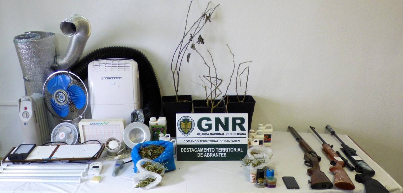 A ação culminou com a apreensão de diverso material, destacando-se 130 doses de canábis; Cinco pés de canábis; Duas armas de ar comprimido; Uma caçadeira; Diverso material relacionado com o consumo, acondicionamento e produção de produto estupefaciente em estufa.