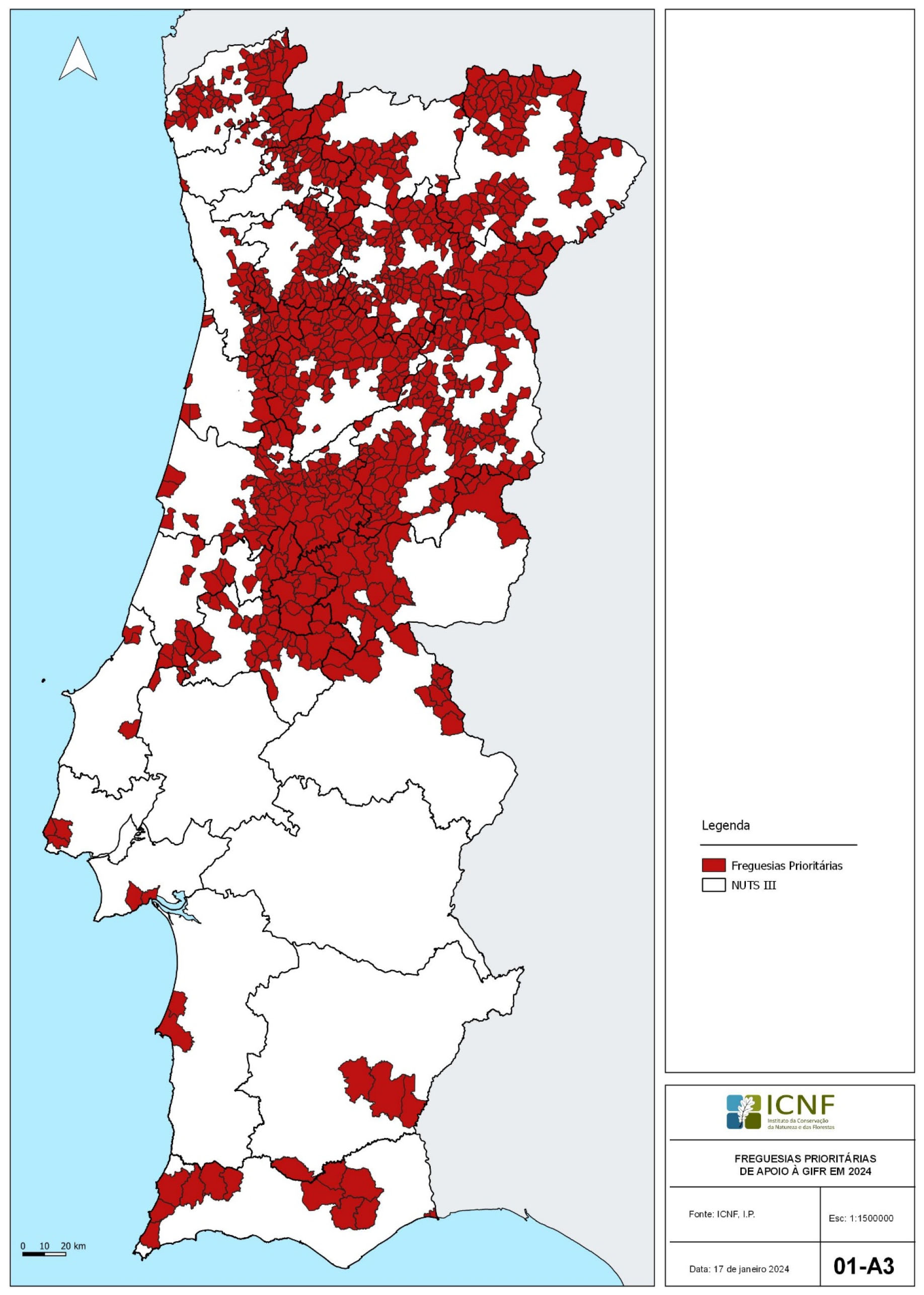 “Para efeito da seleção das freguesias, mantiveram-se os critérios adotados desde 2022, que incorporam as componentes de perigosidade conjuntural de incêndio rural e de valor dos ecossistemas. Como resultado, foram agora identificadas 991 freguesias (34% do número total), cobrindo 2.844.170 hectares de área total (32% da superfície de Portugal Continental) e englobando 1.983.590 hectares de espaços florestais (37 % da sua área total)”, precisa o diploma, que é publicado anualmente.