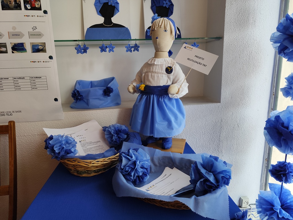 Mas há outras possibilidades de utilização destes materiais como bonecas ou assessórios de moda. Neste caso concreto há uma aluna da Escola Superior de Tecnologia de Abrantes, também voluntária na Liga, que começou a fazer brincos e outros assessórios com os restos de TNT.