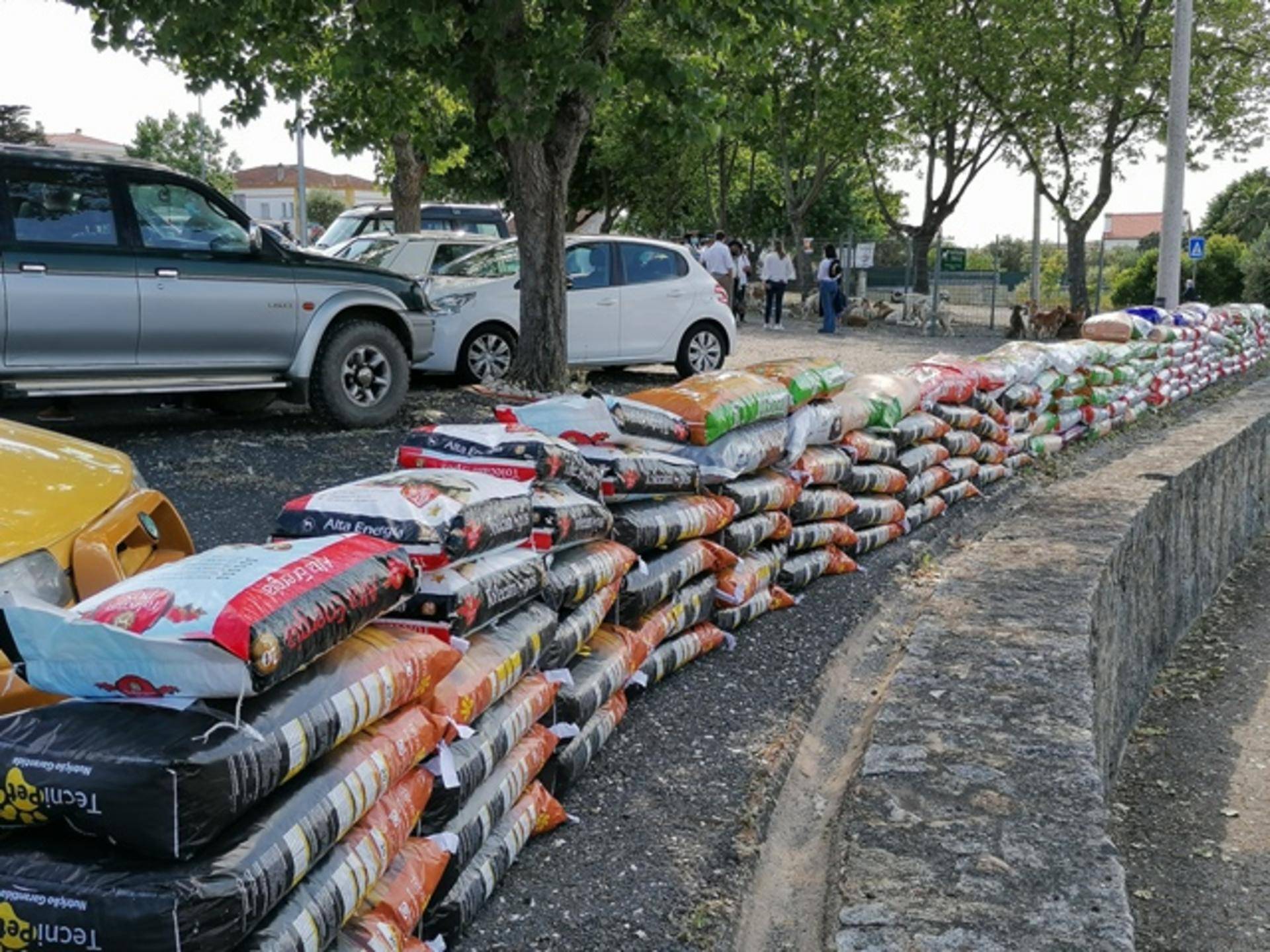 Finalmente, neste sábado, foi possível, ao longo de todo o dia, fazer um encontro, autorizado pelas entidades de Saúde Pública, para fazer a entrega de cinco toneladas de ração recolhidas para distribuir pelas matilhas da região.