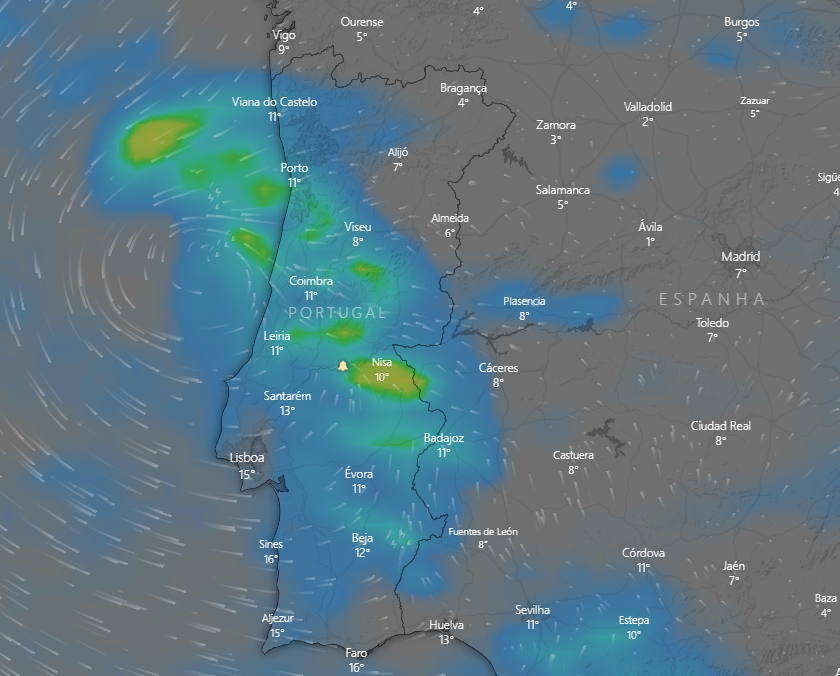 Prevê-se que na sexta-feira ocorram aguaceiros, por vezes fortes, no centro do país, vale do Tejo e Alto Alentejo, que poderão estender-se ao Minho e ao Douro Litoral, com o período crítico entre as 00:00 e as 06:00.