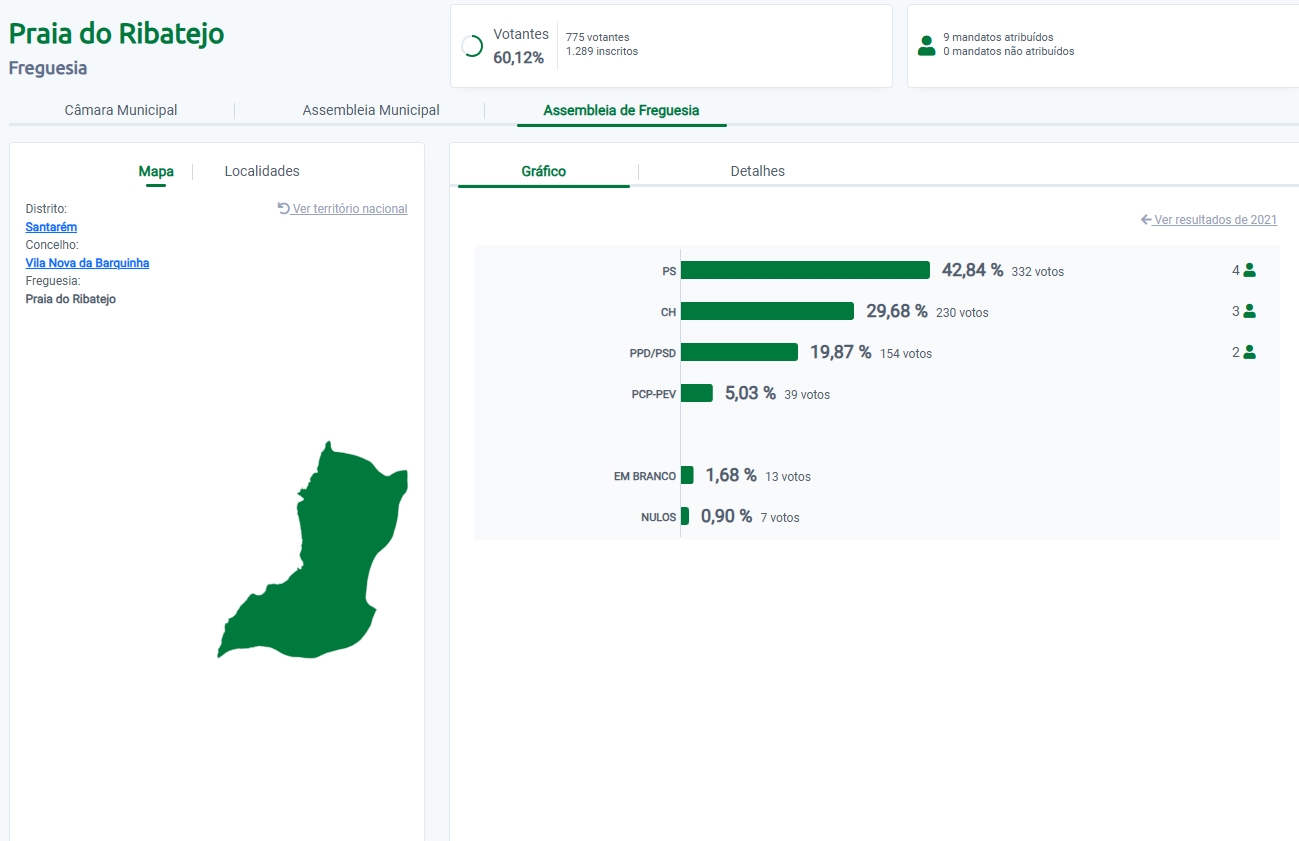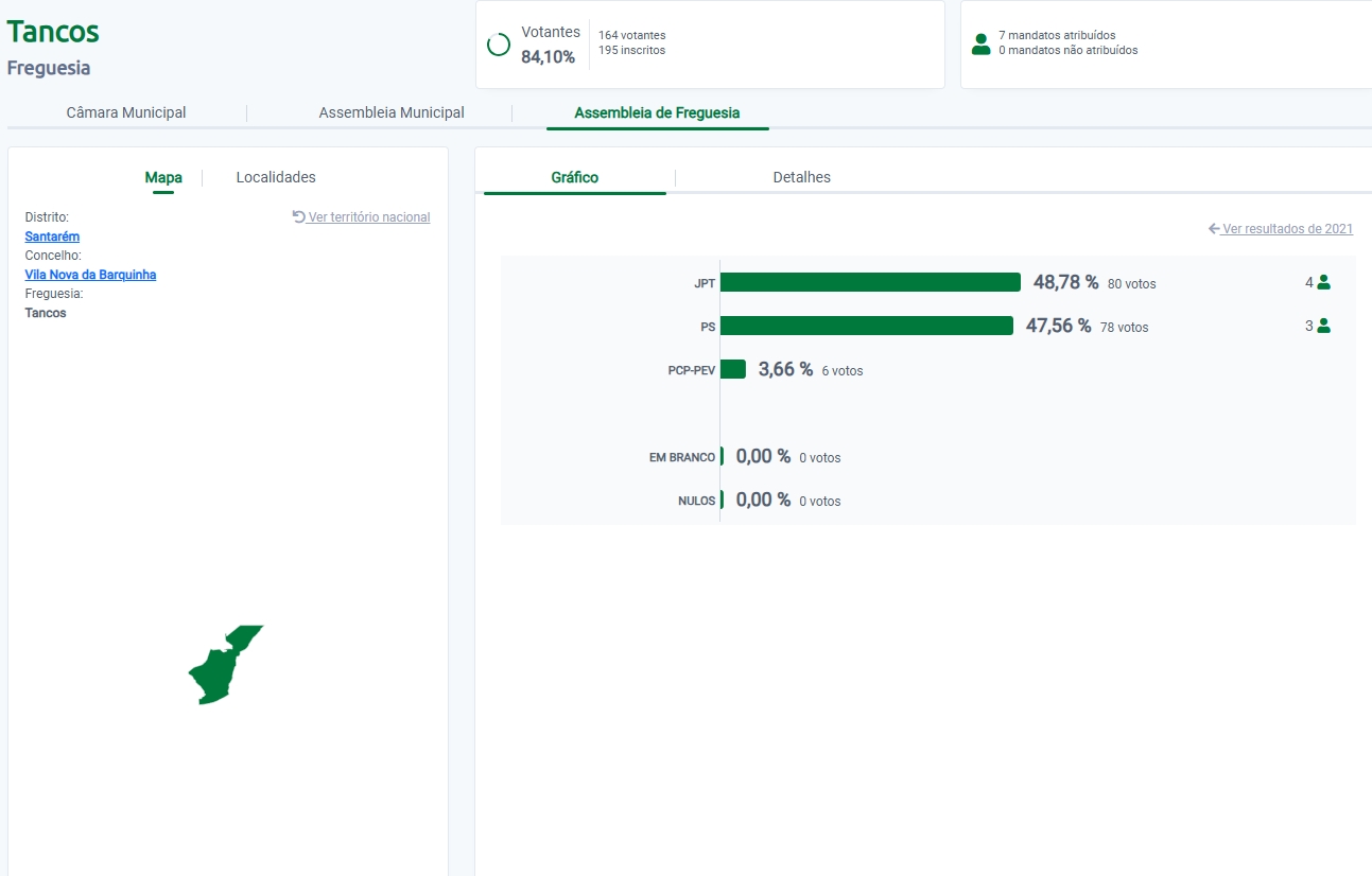 Nas juntas de freguesia o PS vai liderar três delas, Barquinha, Praia do Ribatejo e Atalaia, e o movimento de independentes em Tancos. De registar Barquinha e Praia do Ribatejo houve vitória do PS em maioria relativa.