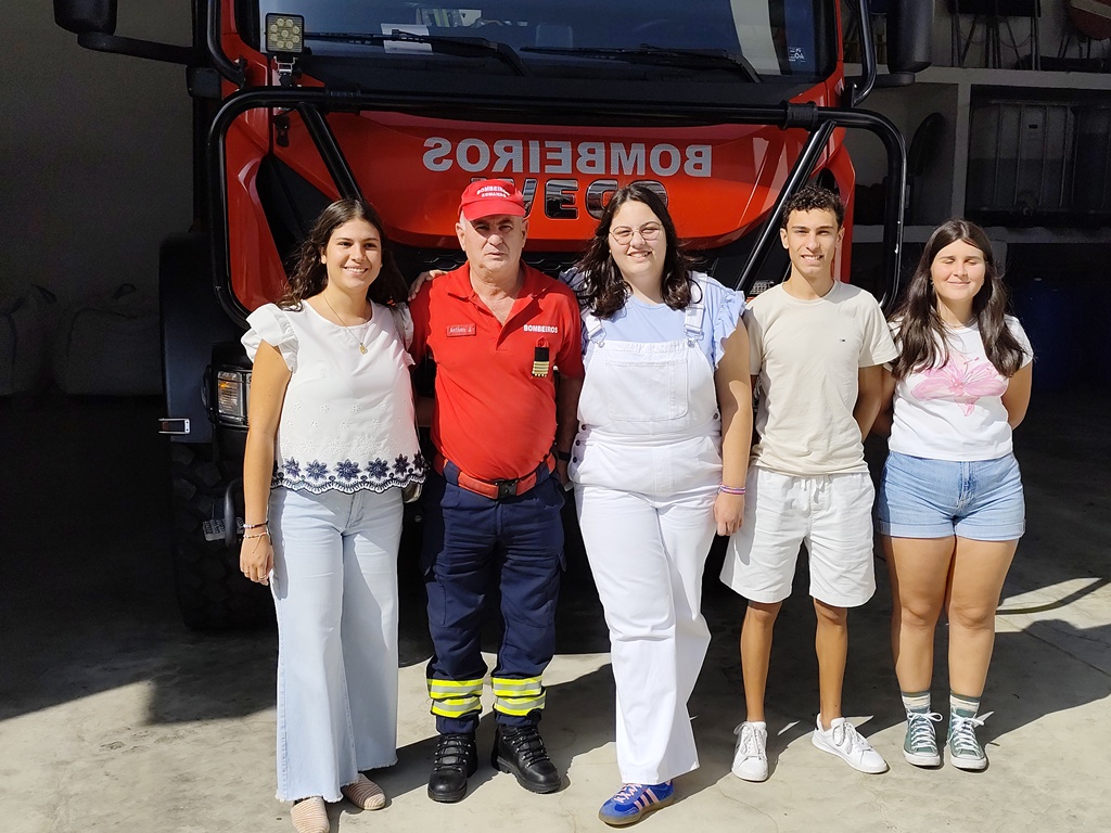 Presidentes do Rotaract e do Interact com o comandante dos Bombeiros de Abrantes