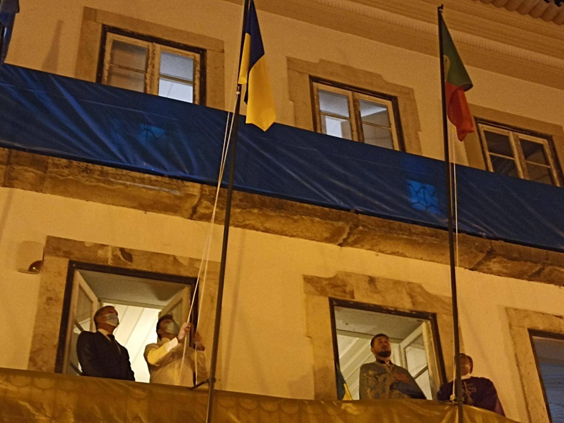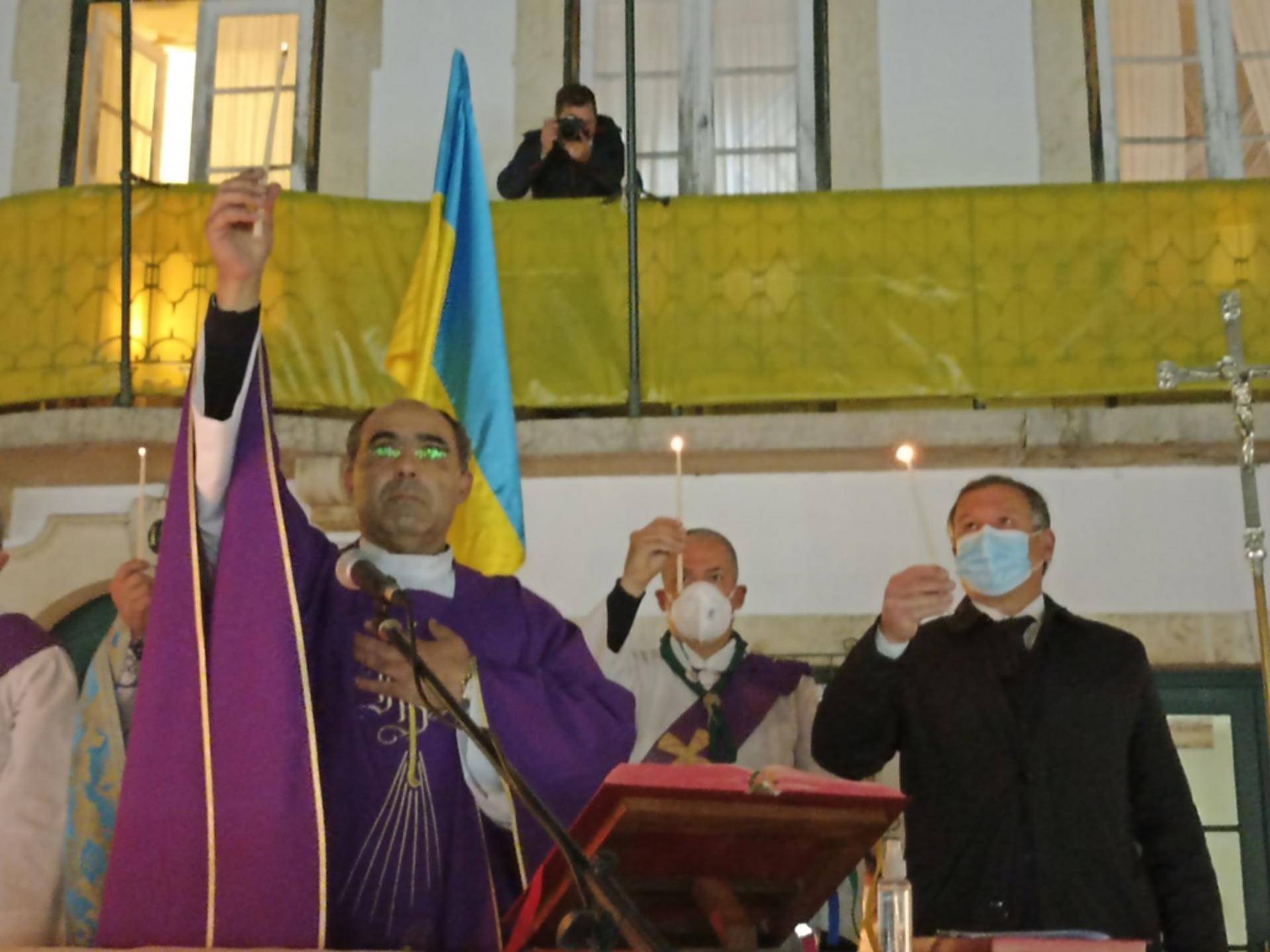 Antes o presidente da Câmara de Abrantes, os padres Castanheira e Ivan e Maksim Darmogray, funcionário da autarquia, com naturalidade ucraniana, hastearam a bandeira azul e amarela daquele país no edifício dos Paços do Concelho. Bandeira esta que vai ficar hasteada até que a guerra termine, como confirmaria mais tarde o presidente da Câmara Municipal de Abrantes.