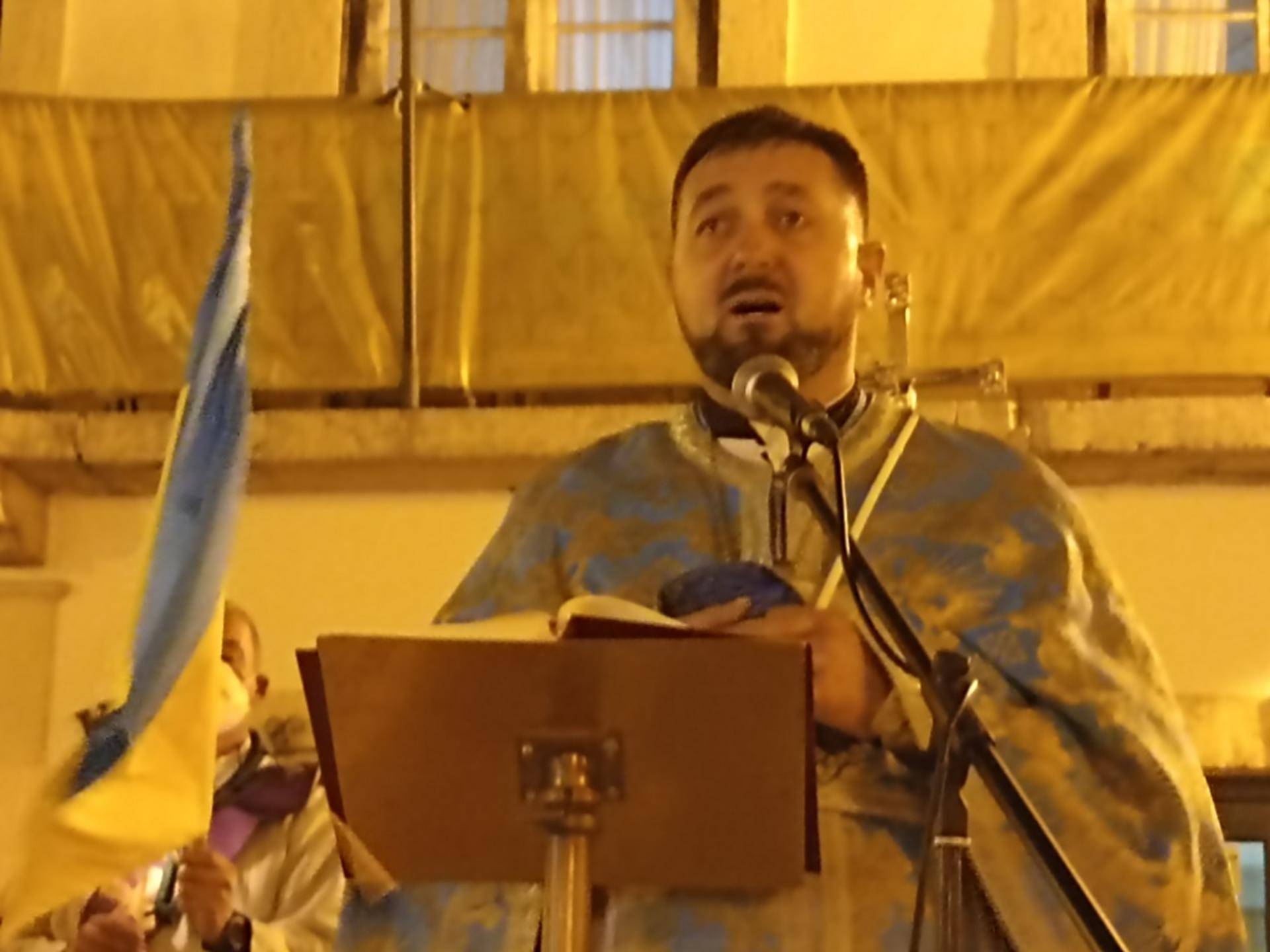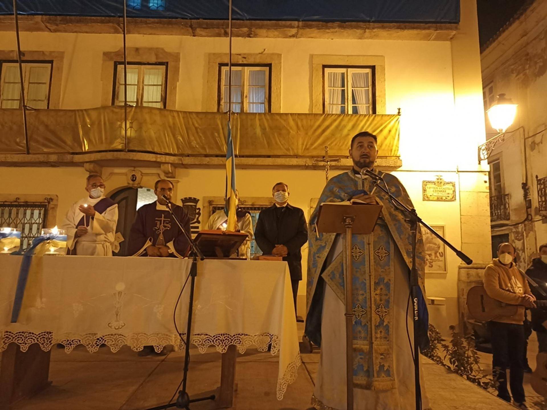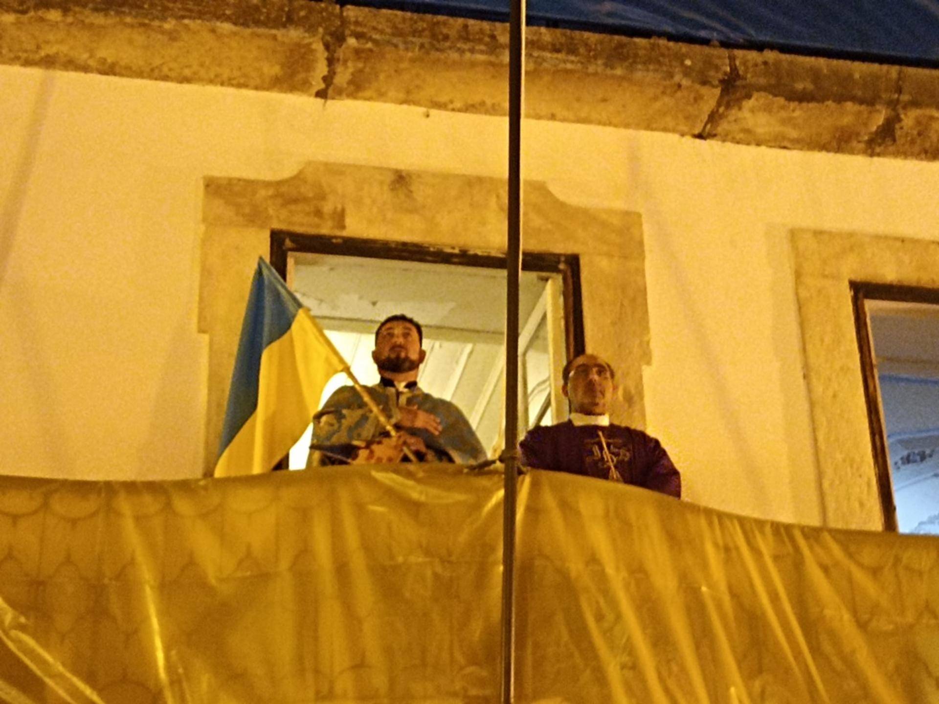 Num discurso bem vincado no apoio ao povo ucraniano e ao presidente Volodymyr Zelenski o padre Ivan terminou a sua intervenção a entoar o Hino da Ucrânia, acompanhado pelos ucranianos espalhados pela praça Raimundo Soares.