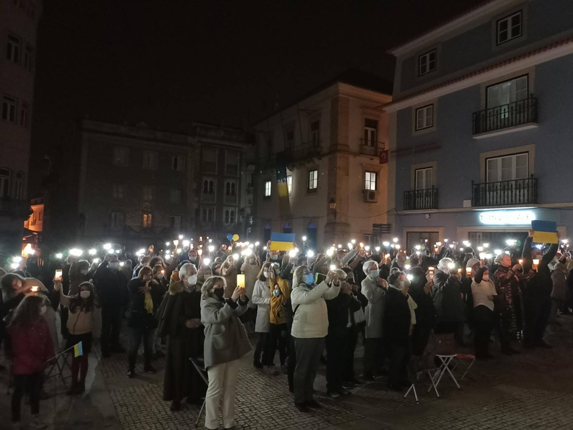 A praça Raimundo Soares, a praça do Município de Abrantes, cedo começou a ganhar movimento com os preparativos para uma vigília da cidade, do concelho, das paróquias, em homenagem à Ucrânia e ao povo ucraniano.