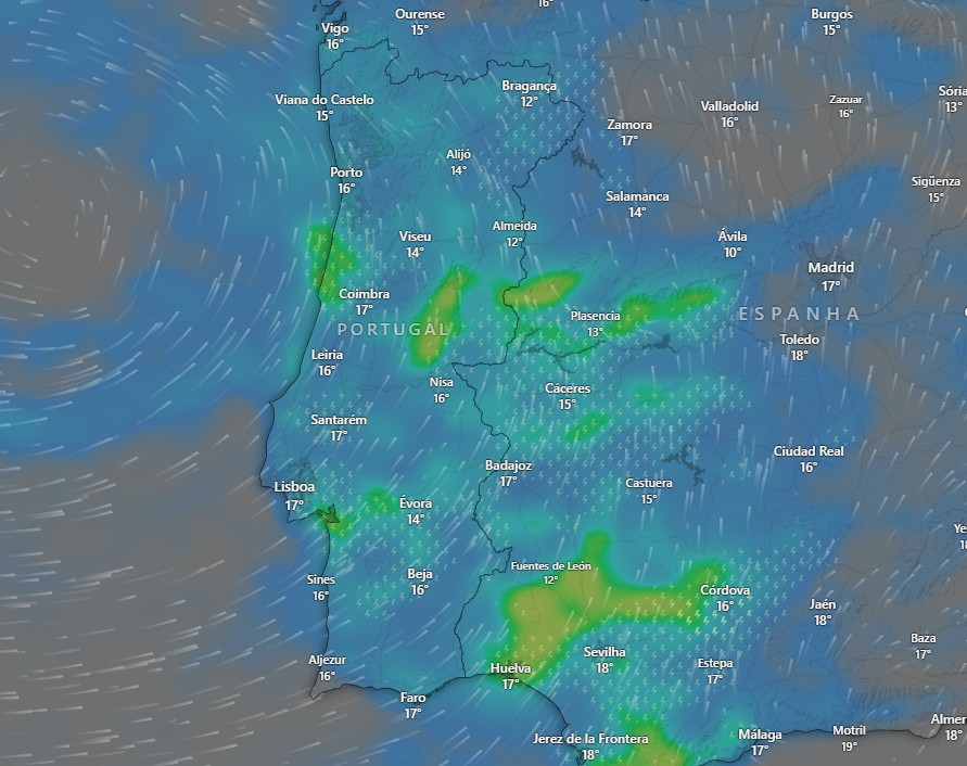 Até sábado, estão previstos períodos de chuva ou aguaceiros, por vezes fortes e acompanhados de trovoada, em especial na sexta-feira, explica o Instituto Português do Mar e da Atmosfera (IPMA), adiantando que depressão se irá posicionar no final de quinta-feira a oeste da Península Ibérica, deslocando-se lentamente para norte.
