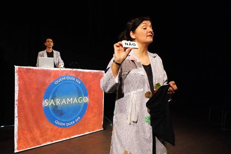 Ao longo da peça, “como num jogo, somos levados através do universo da escrita de José Saramago, com avanços e recuos, ultrapassando uma dificuldade aqui, fazendo uma descoberta ali. Quem quer ser Saramago? Uma viagem contra a crueldade, a humilhação e a mentira, guiada pela ‘Voz’ e pela obra do único Nobel da literatura em língua portuguesa, com destino a um mundo mais digno, justo e verdadeiro.”