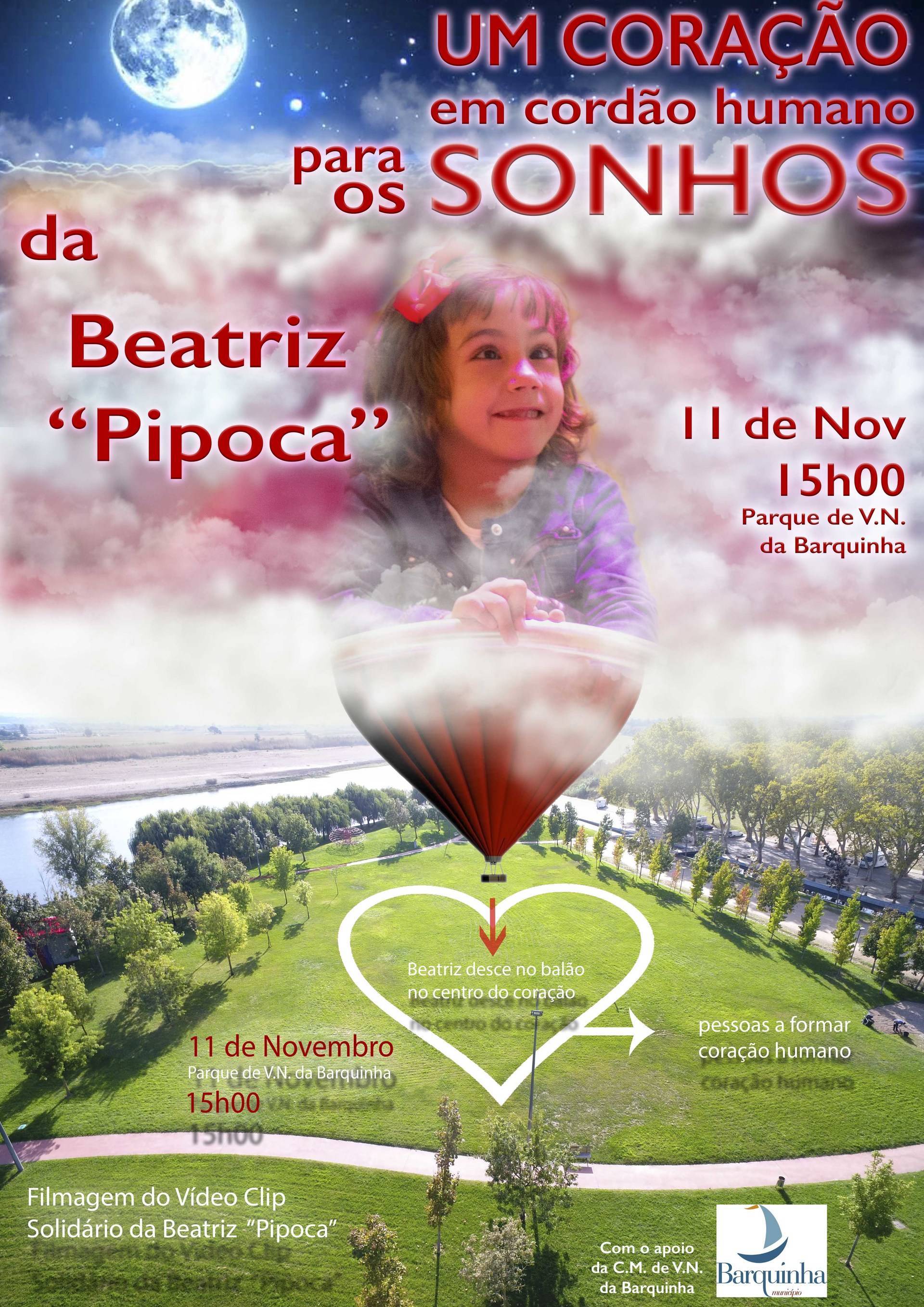 Hoje pelas 14h30, irá ser filmada no parque de Barquinha a cena final do vídeo clip com um enorme cordão humano que irá desenhar na relva um grande coração, onde irá aterrar um balão de ar quente com a Beatriz a bordo. Pretende-se simbolizar a união e afeto de todos em torno desta causa, é o que se pode ler na informação da organização do evento.