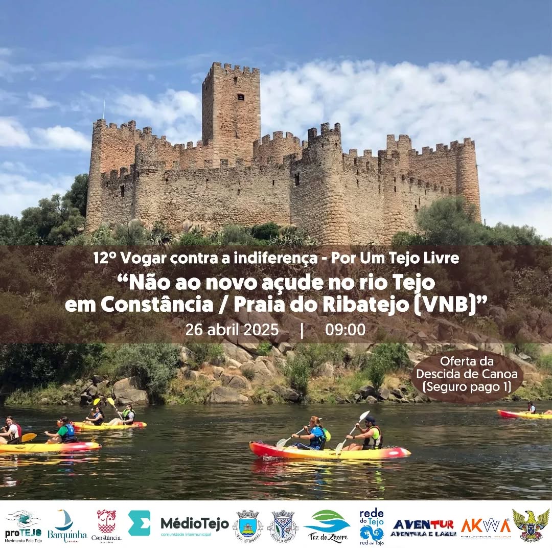 O movimento proTEJO assinala no dia 26 de abril a 12.ª edição do "Vogar contra a indiferença" com uma descida em canoa entre Constância e Barquinha, num apelo ibérico de cidadãos “por um Tejo livre” de açudes e barragens.